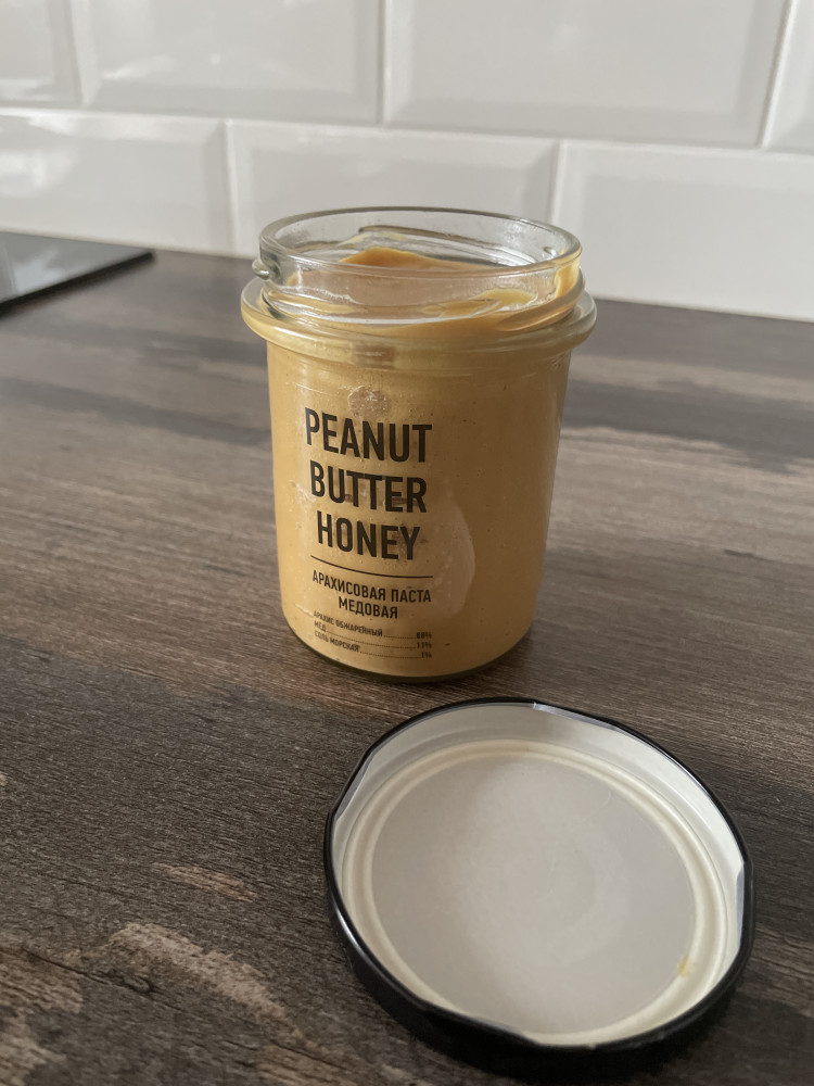 Приятный дизайн, без излишков. Несомненный плюс в стеклянной таре для любителей ЭКО. Единственное мне не понравилось что нет защитной плёнки под крышкой (( хотя вместо неё есть характерный щелчок при открывании (как в детских пюрешках). Вкус. Кремообразная текстура без кусочков, слегка уловимый вкус мёда, сладковата (опять же за счёт мёда) больше чувствуется арахис, всё как надо для пасты.