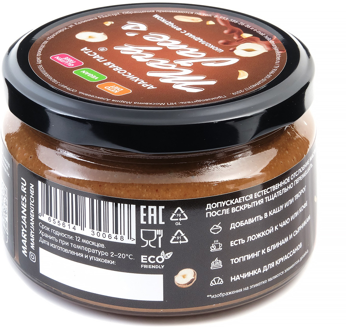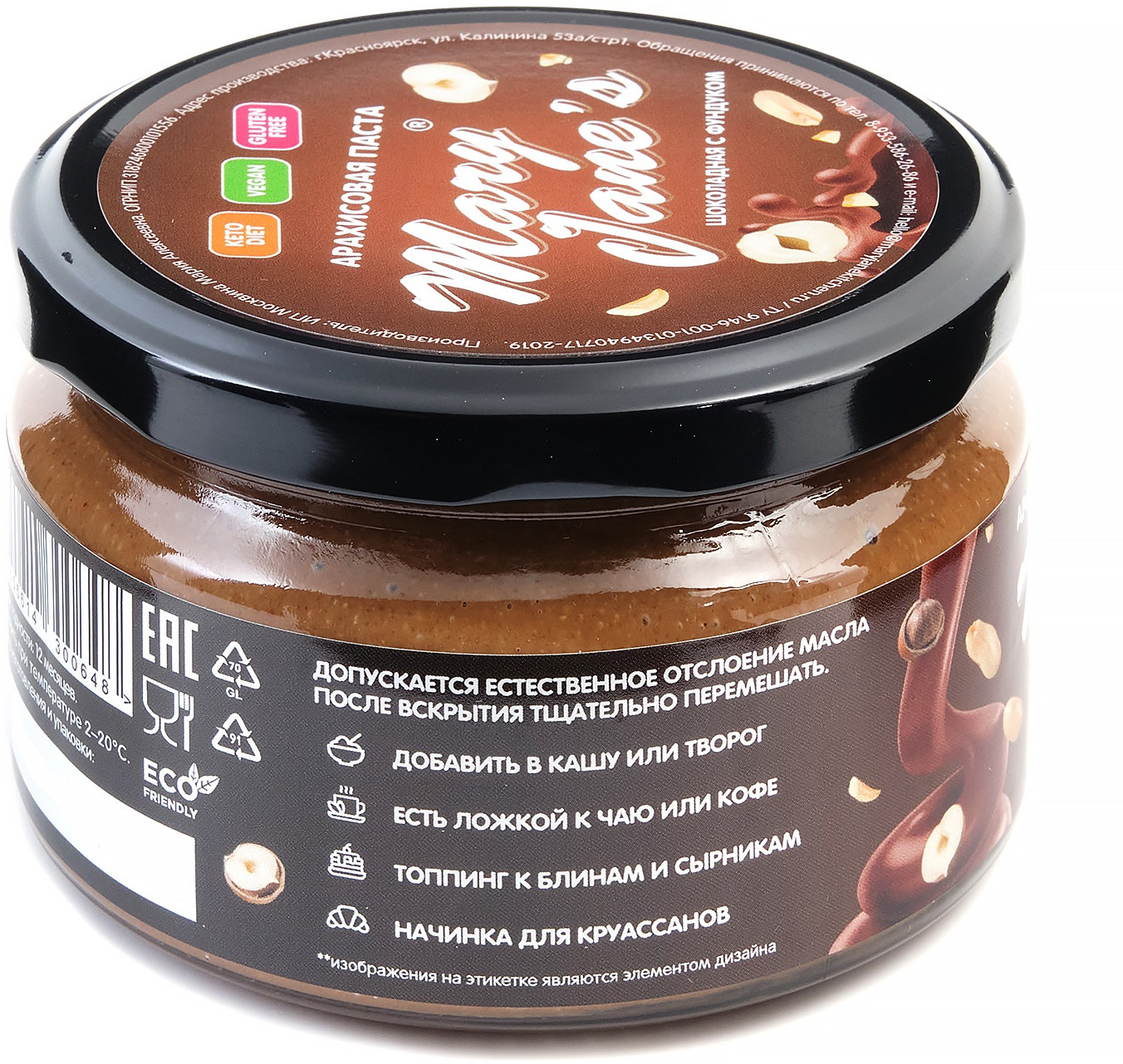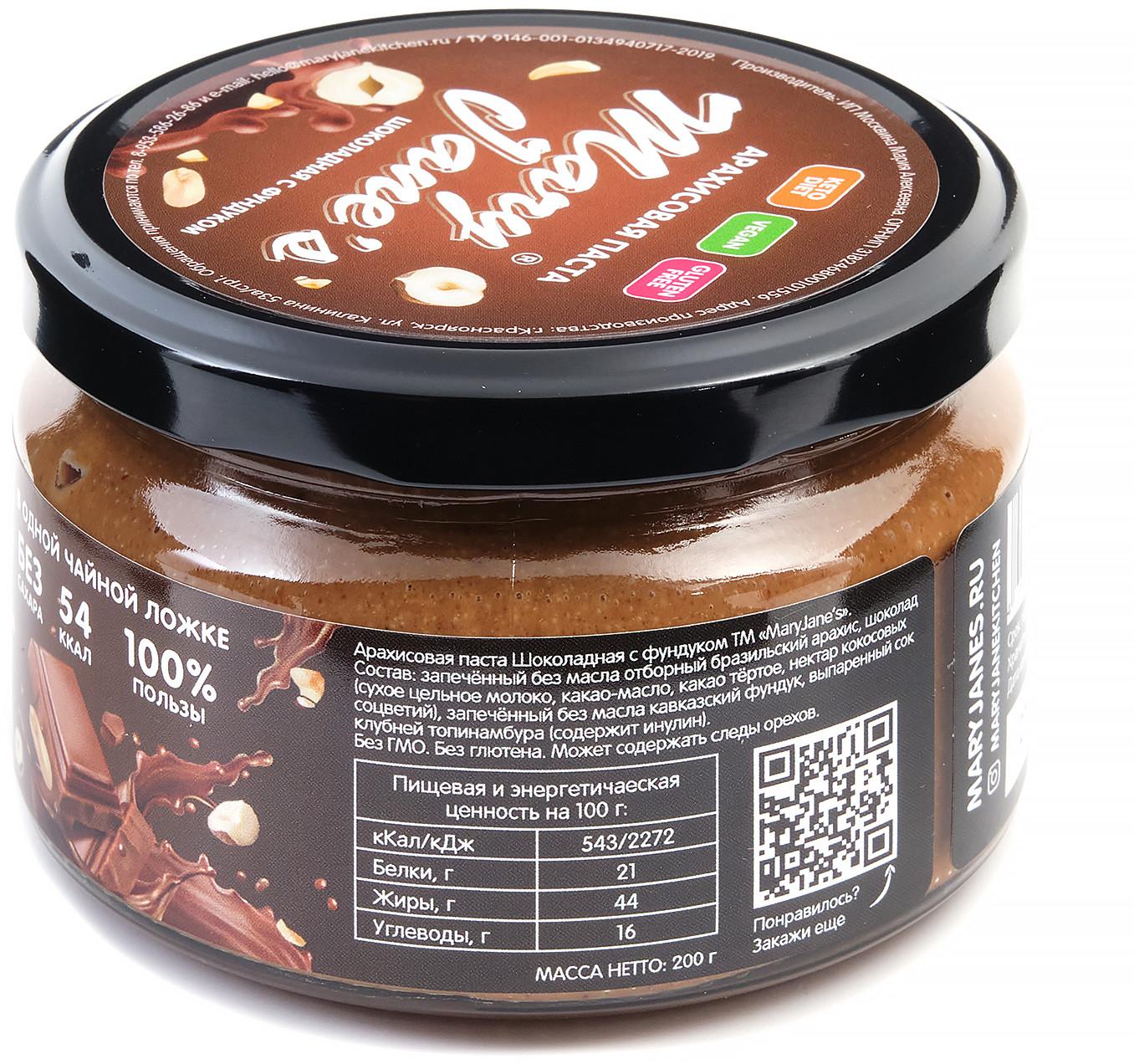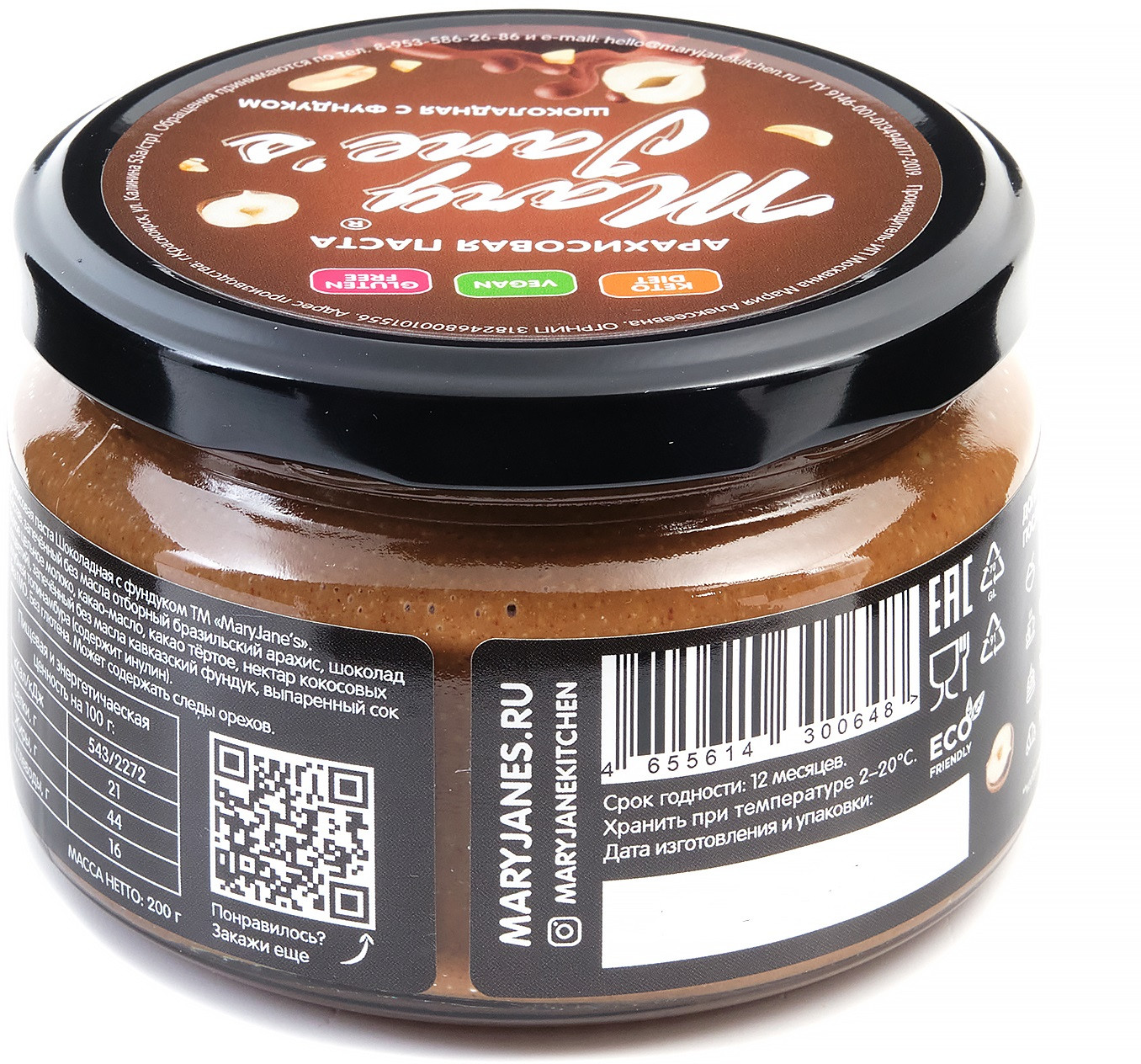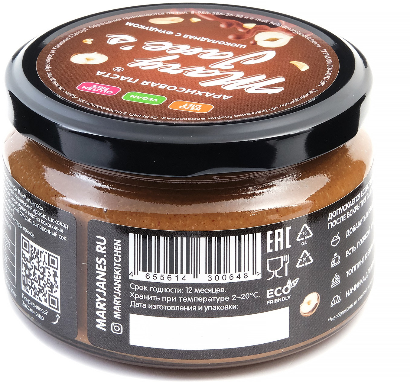 | Арахисовая паста Mary Jane’s Kitchen — без консервантов, наполнителей, подсластителей, эмульгаторов и других добавок или промышленных хитростей, имеет нежно-кремовую консистенцию и восхитительный натуральный вкус! Паста производится в Красноярске малыми партиями, только из свежих поставок сладких сортов арахиса, только из цельных орехов лучшего качества. |
