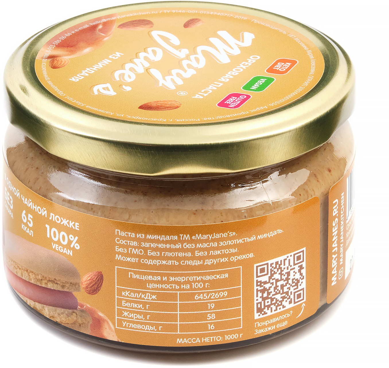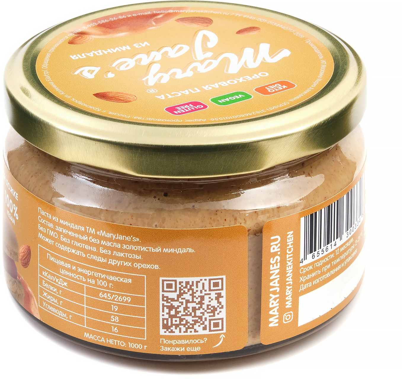 Арахисовая паста Mary Jane’s Kitchen — без консервантов, наполнителей, подсластителей, эмульгаторов и других добавок или промышленных хитростей, имеет нежно-кремовую консистенцию и восхитительный натуральный вкус! Паста производится в Красноярске малыми партиями, только из свежих поставок сладких сортов арахиса, только из цельных орехов лучшего качества. |