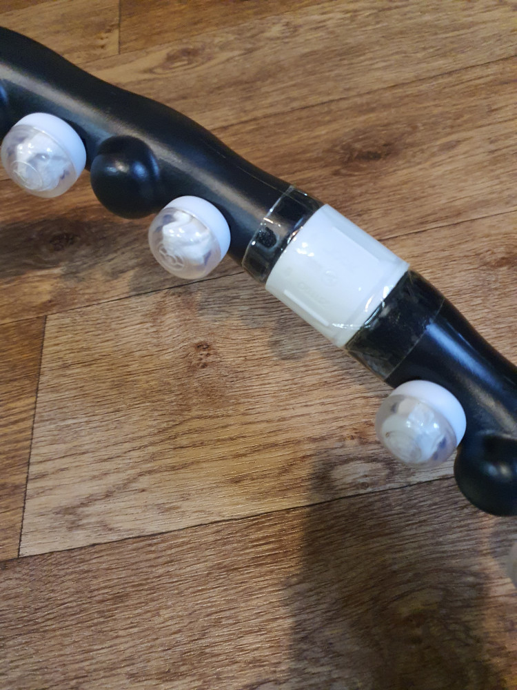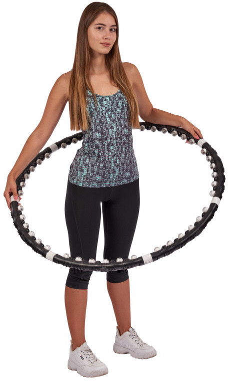 Обруч неплохой, но пришлось слегка модернизировать, за это сняла звезду. Чтобы не гремел, каждый магнитик обернула кусочком туалетной бумагой и только потом поместила в капсулы. Иначе он как громкая погремушка. Далее, места скрепления дуг обруча, заскотчевала. Так как я кручу на скорости, они разлетаются, хотя при скреплении, все щелкало, когда в пазы входило. Вес у него около 1 кг. Для меня легковат, так как, я кручу 2,2 кг, но тот мягкий. Этот взяла, чтобы проминало бока. И когда я начинала его крутить, были синячки, что говорит о его массажном действии и реально по талии хорошо все массажирует. Сейчас совмещаю оба обруча. Капсулы не вылетают, но если начнут вылетать, найду способ их залипасить. За такие деньги обруч неплохой.