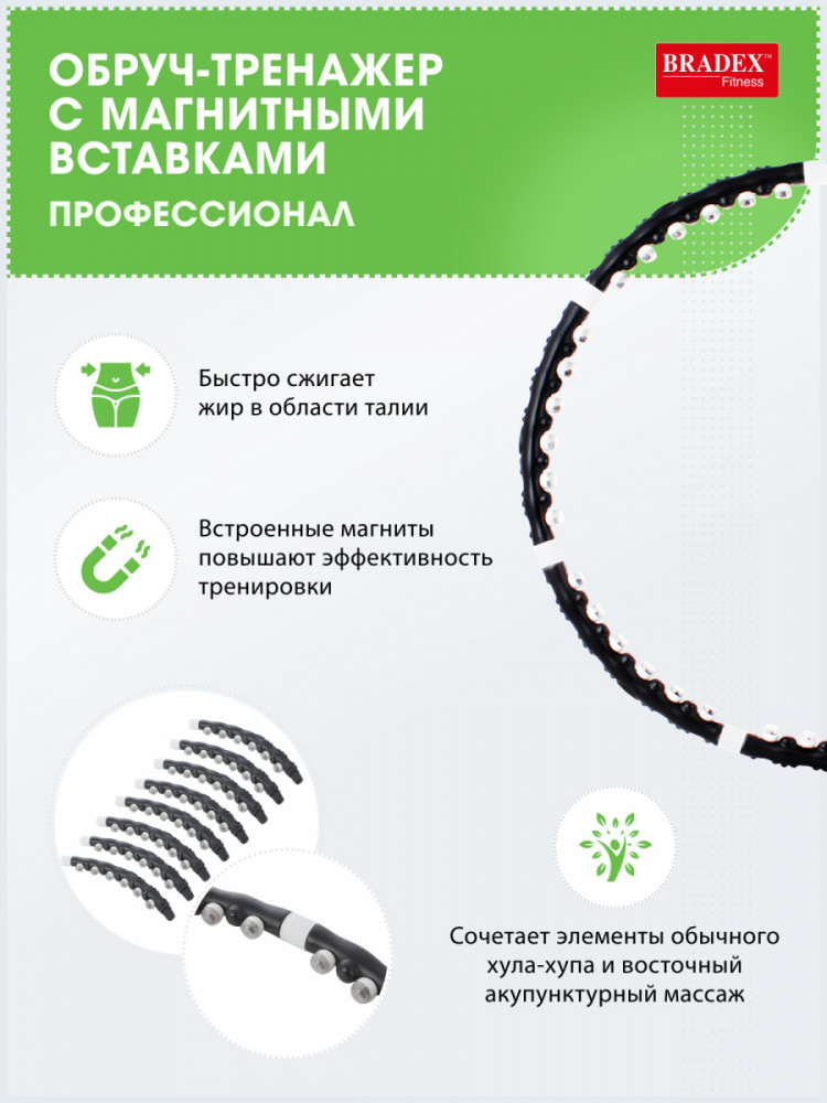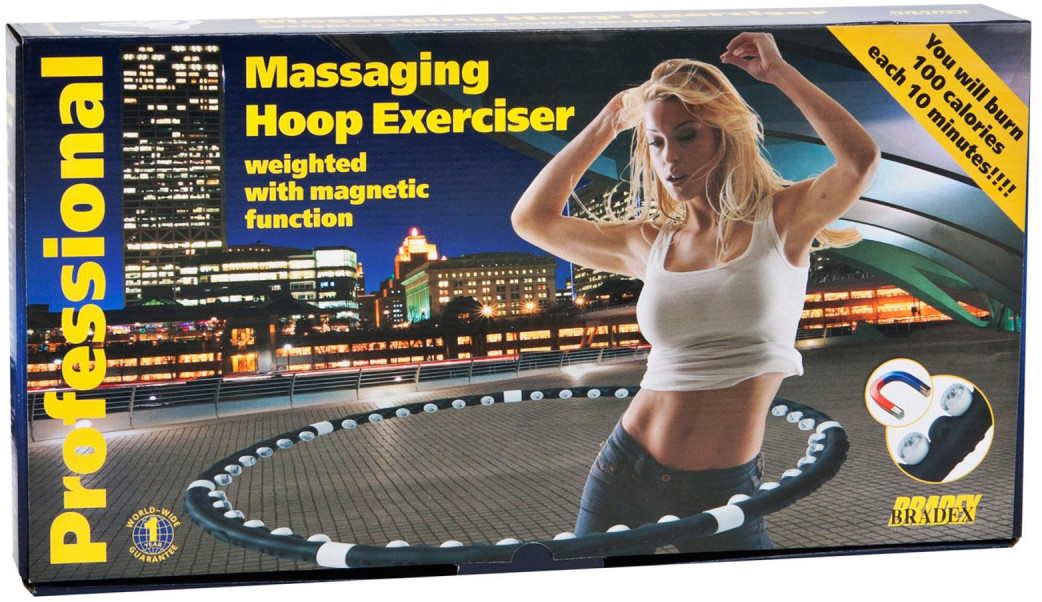 Ужасный обруч. Легкий. Его вес всего 1.3. Больно давит на талию. Магниты там вообще не нужны. Выглядит как самая дешевая пластмасса. Чтобы его собрать понадобились и дрель и хорошие мужские руки. Эти вставыши не залазили в дырки.