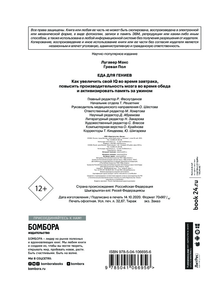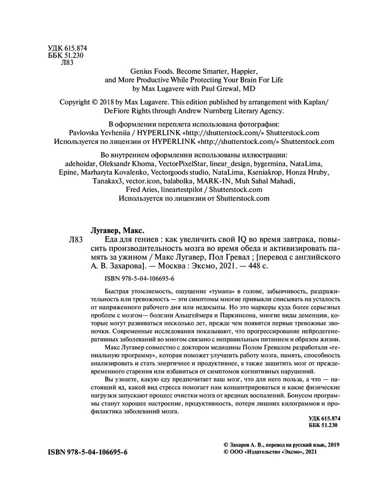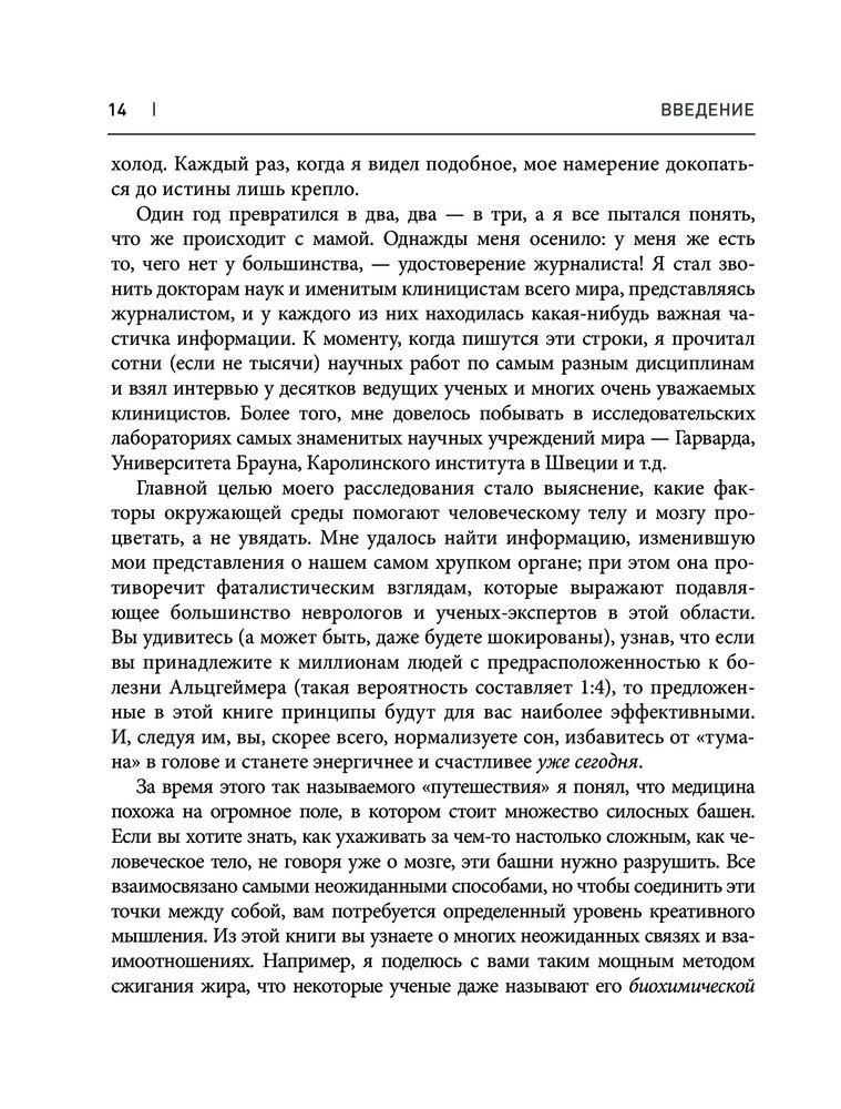 Еда для гениев. Как увеличить свой IQ во время завтрака, повысить производительность мозгаВ данный момент этот товар отсутствует в продаже. Возможно, у нас найдется аналогичный или похожий товар здесь. Серия: Открытия века: новейшие исследования Быстрая утомляемость, ощущение «тумана» в голове, забывчивость, раздражительность или тревожность — эти симптомы многие привыкли списывать на усталость от напряженного рабочего дня или недосыпы. Но это маркеры куда более серьезных проблем с мозгом — болезни Альцгеймера и Паркинсона, многие виды деменции, которые могут развиваться несколько лет, прежде чем появятся первые тревожные звоночки. Современные исследования показывают, что прогрессирование нейродегенеративных заболеваний во многом связано с неправильным питанием и образом жизни. Макс Лугавер совместно с доктором медицины Полом Гревалем разработали «гениальную программу», которая поможет улучшить работу мозга, память, способность анализировать и стать энергичнее и продуктивнее, а также защитить мозг от преждевременного старения или избавиться от симптомов когнитивных нарушений. Вы узнаете, какую еду предпочитает ваш мозг, что для него польза, а что — настоящий яд, какой вид стресса помогает нам концентрироваться и какие физические нагрузки запускают процесс очистки мозга от вредных воспалений. Бонусом программы станут хорошее настроение, продуктивность, потеря лишних килограммов и профилактика заболеваний мозга. |