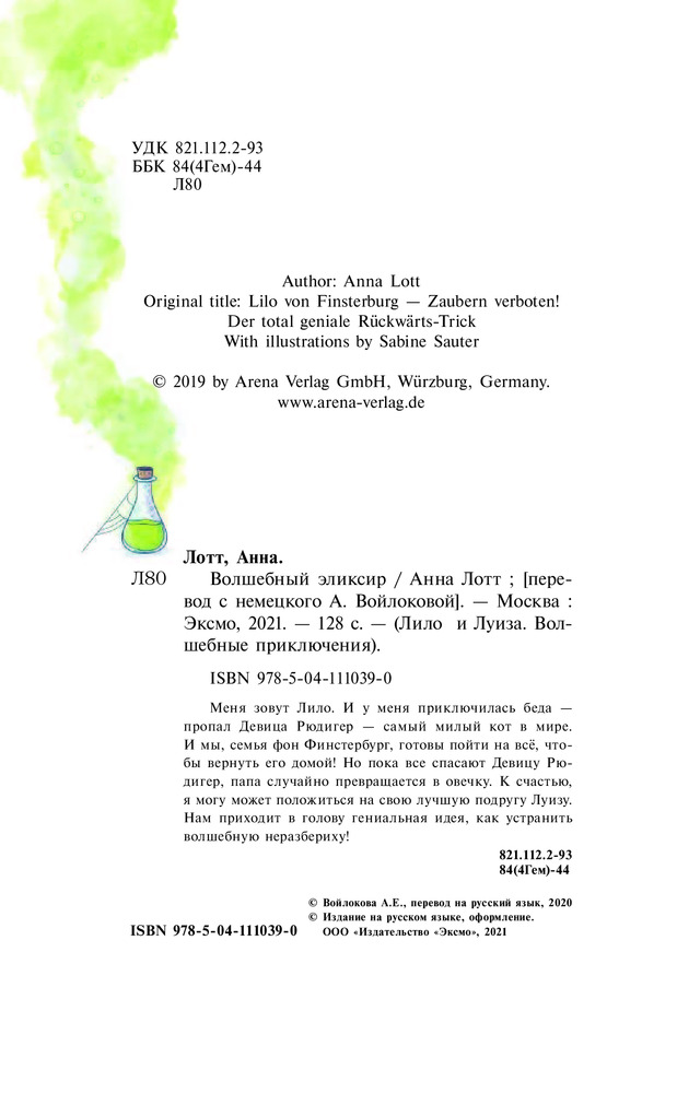 В данный момент этот товар отсутствует в продаже. Возможно, у нас найдется аналогичный или похожий товар здесь. Серия: Детск. Лило и Луиза. Волшебные приключения Меня зовут Лило. И у меня приключилась беда — пропал Девица Рюдигер — самый милый кот в мире. И мы, семья фон Финстербург, готовы пойти на всё, чтобы вернуть его домой! Но пока все спасают Девицу Рюдигер, папа случайно превращается в овечку. К счастью, я могу может положиться на свою лучшую подругу Луизу. Нам приходит в голову гениальная идея, как устранить волшебную неразбериху! |