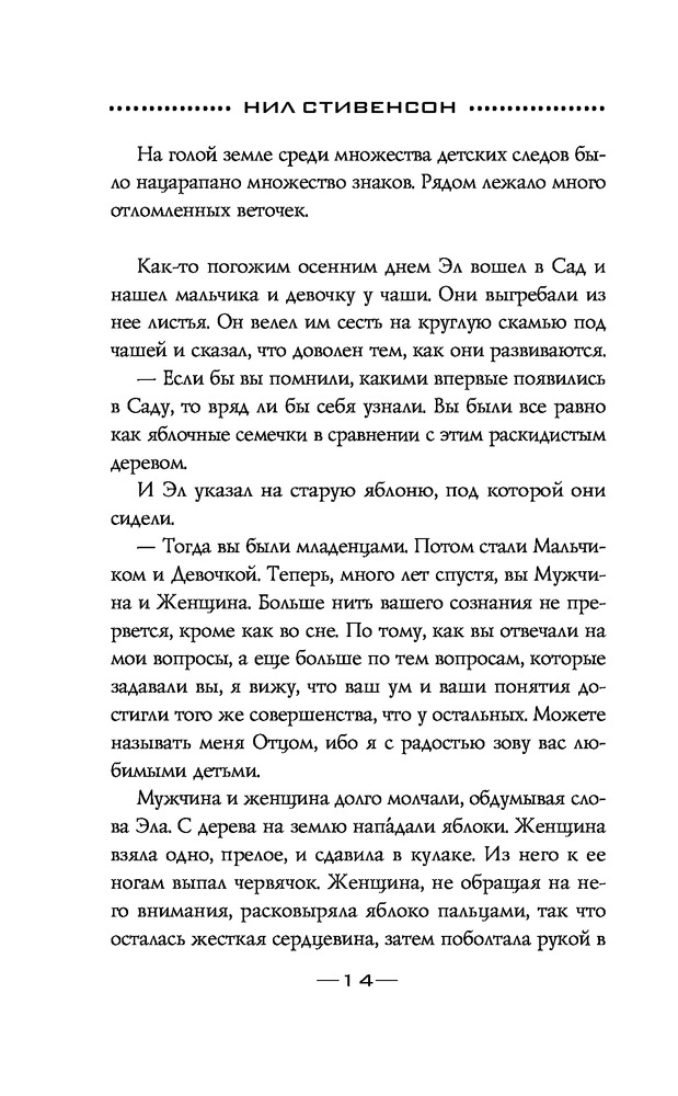 Серия: Fanzon. Большая фантастика Ричард «Додж» Фортраст, миллионер и основатель известной компании по разработке видеоигр, умирает в результате несчастного случая. По условиям завещания, его мозг сканируют, а структурную информацию загружают в хранилище данных, надеясь на дальнейшее развитие технологий. Проходят годы и оцифрованное сознание Доджа подключают к Битмиру — вечной загробной жизни, в которой люди существуют как цифровые души в телах-симулякрах. Но является ли утопией этот новый дивный бессмертный мир? Драматический конфликт аналогового и цифрового, человека и машины, ангелов и демонов, богов и верующих, суетного и вечного в будущем, которое вот-вот наступит. Книга вторая эпического романа Нила Стивенсона. |