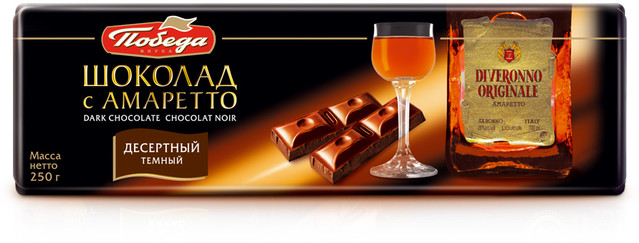 Победа Шоколад темный с амареттоВ данный момент этот товар отсутствует в продаже. Возможно, у нас найдется аналогичный или похожий товар здесь. Десертный шоколад Победа вкуса отличается повышенным содержанием какао-бобов особой мягкой обжарки (50%). Пропитанный алкоголем (коньяком, амаретто или ромом), окруженый нежной оболочкой из шоколада. |