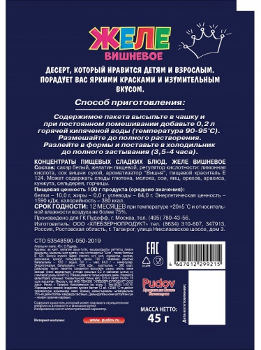 Способ применения: содержимое пакета высыпьте в чашку и при постоянном помешивании добавьте 0,2 л горячей кипяченой воды (температура 90-95 °С). Размешайте до полного растворения. Разлейте в формы и поставьте в холодильник до полного застывания (3,5 — 4 часа).