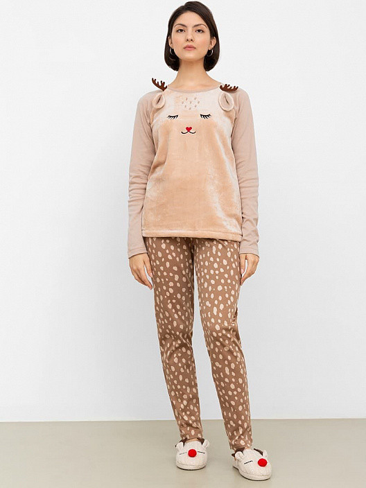 Веселенький комплект. Взяла для дочки, ей очень понравился. Передняя часть кофты выполнена из ткани, имитирующей мех. Остальное- трикотаж. Кофточка мягкая, как дочь сказала "антистресс". Размер соответствует.
