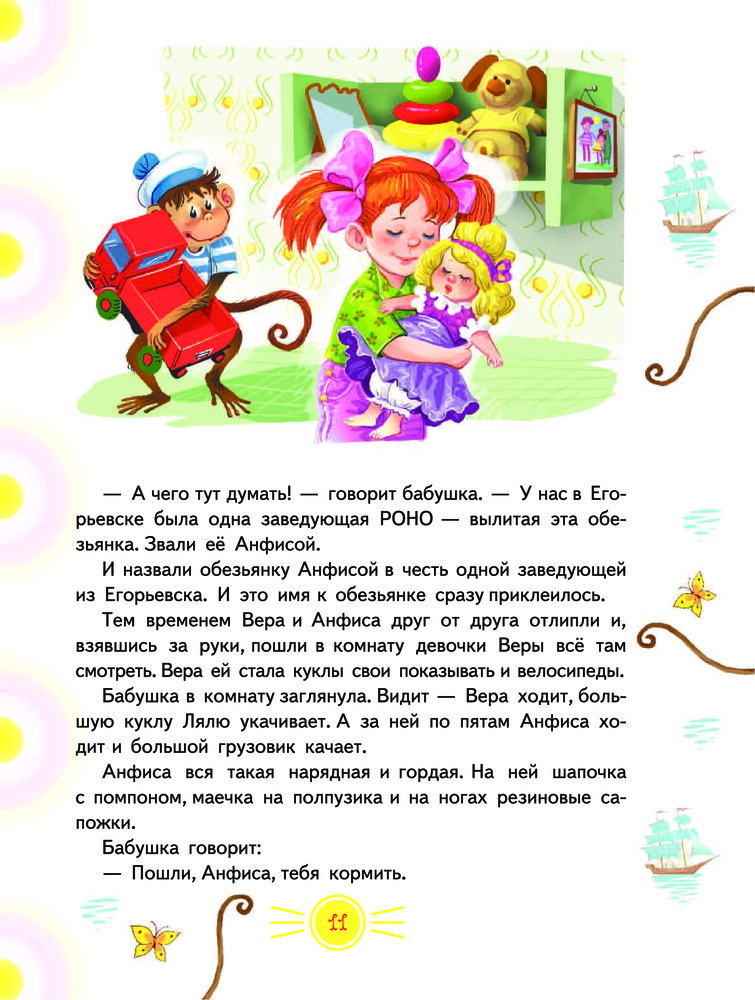 Про девочку Веру и обезьянку Анфису. Вера и Анфиса продолжаютсяВ данный момент этот товар отсутствует в продаже. Возможно, у нас найдется аналогичный или похожий товар здесь. Серия: Планета детства Девочка Вера и обезьянка Анфиса живут в Москве, в обычной городской квартире. Поэтому Анфиса лазает не по пальмам и лианам, а по шкафам и шторам. Она немножко похожа на зверушку, а немножко — на ребенка, |