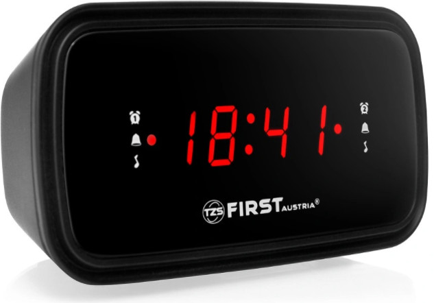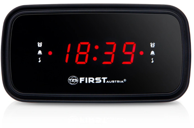 First Austria Радиочасы-будильник First FA-2406-6В данный момент этот товар отсутствует в продаже. Возможно, у нас найдется аналогичный или похожий товар здесь. Часы радиобудильник First FA-2406-6 — удобное устройство с компактными габаритами и нейтральной черной расцветкой. Прибор имеет легкий пластиковый корпус и легко помещается на стол или прикроватную тумбу. Имеется большой монохромный дисплей для отображения данных. Устройство First FA-2406-6 дополнено красной подсветкой, позволяющей смотреть время ночью. Представленная модель дополнена будильником с функцией Snooze. Также имеется FM-тюнер для возможности прослушивания радио. Прибор работает от электросети и дополняется батарейкой CR2032, выполняющей функцию резервного питания. |