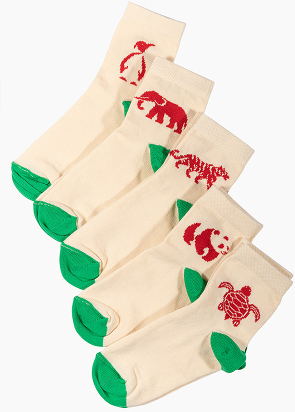 Носки с принтом, пять пар в упаковке. Прочные и износостойкие. У каждого носка уплотненная пятка и утолщенная зона пальцев.