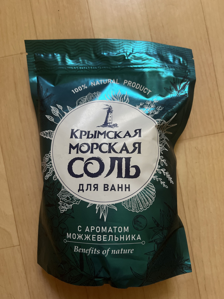 Очень крупная качественная соль, красивая упаковка. В описании написано, что предназначена для женщин, но запах можжевельника вполне подойдёт и для мужчин. Хвойная нотка, очень приятно пахнет.