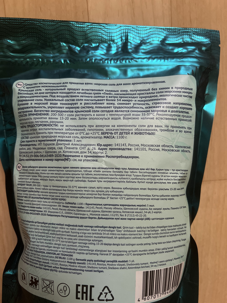 На упаковке написано, что производитель Москва. Не ожидала, что Крымская соль производится в Москве, а не в Крыму.