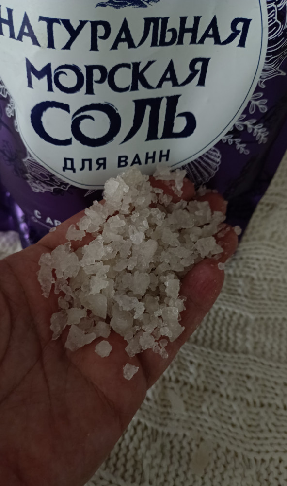 Соль не мелкая, как я люблю, потому что использую кристаллики как камешки для массажа ступней (щекотно, но можно потерпеть). Приятный аромат и концентрация. Обязательно куплю еще.