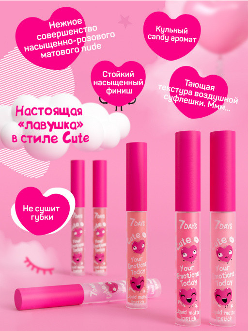 Лови secret #1 — cамая притягательная и волшебная бьюти — это твоя индивидуальность! Чтобы суперски ее подчеркнуть и всегда быть просто «ААА» используй жидкую матовую помаду для губ 7Days Your Emotions Today Cute / 108 Deep rose, ведь ее идеальная, тающая на губах бархатная текстура, словно лепестки нежнейших цветов, придаст им фантастическую соблазнительность, а насыщенный нюдовый оттенок сделает губки yummy yummy.