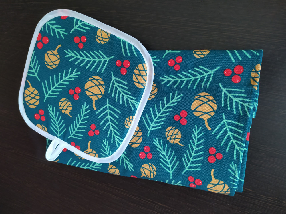 Ткань плотная, расцветка очень красивая. Брала вместе с прихваткой. Мне понравилось
