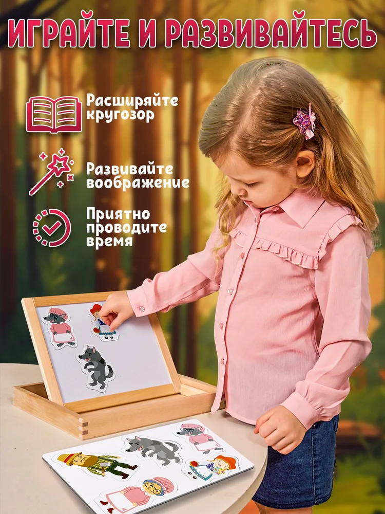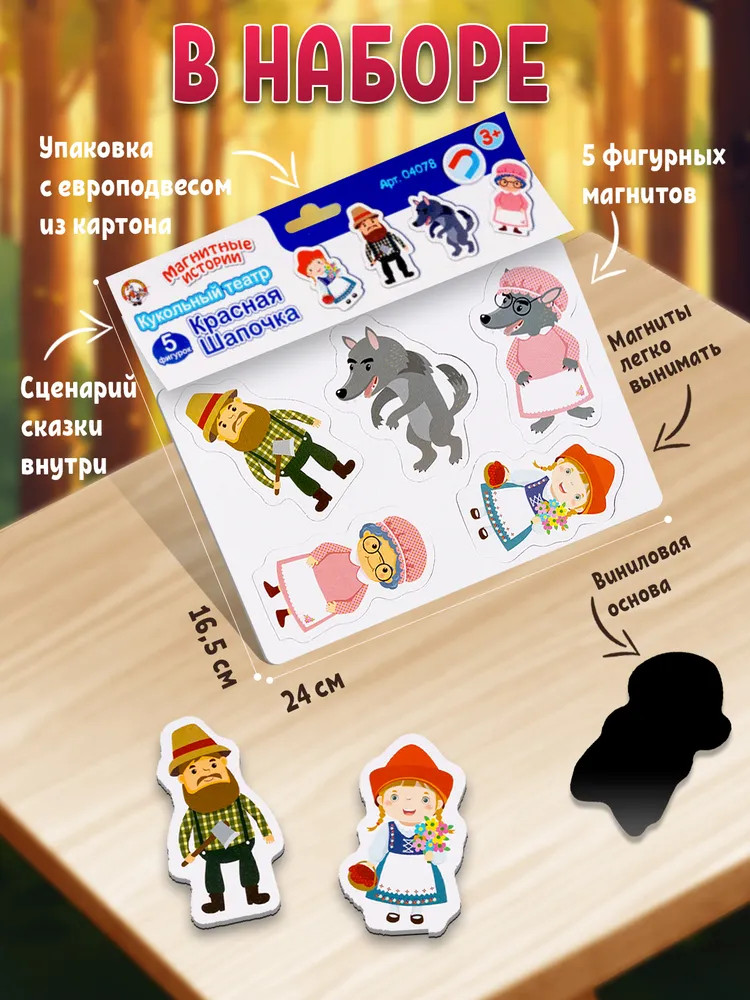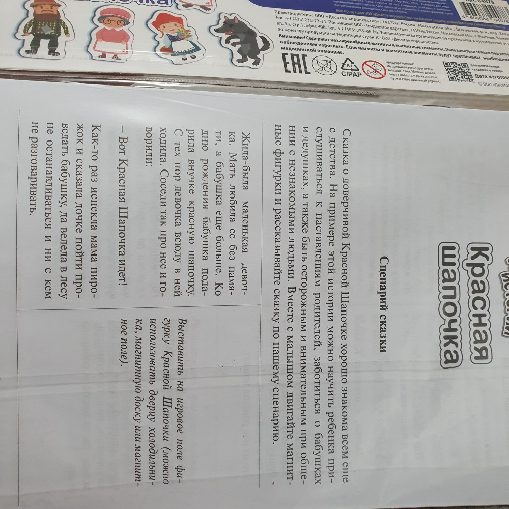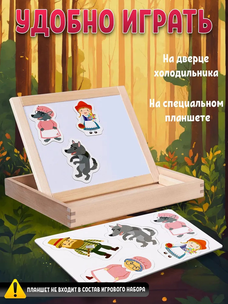 Десятое королевство Магниты «Красная шапочка»В данный момент этот товар отсутствует в продаже. Возможно, у нас найдется аналогичный или похожий товар здесь. Серия: Магнитные истории Познакомьте вашего ребёнка с персонажами сказки «Красная Шапочка» с помощью набора магнитов из серии «Магнитные истории»! Вместе с малышом двигайте магнитные фигурки и рассказывайте сказку по готовому сценарию. |