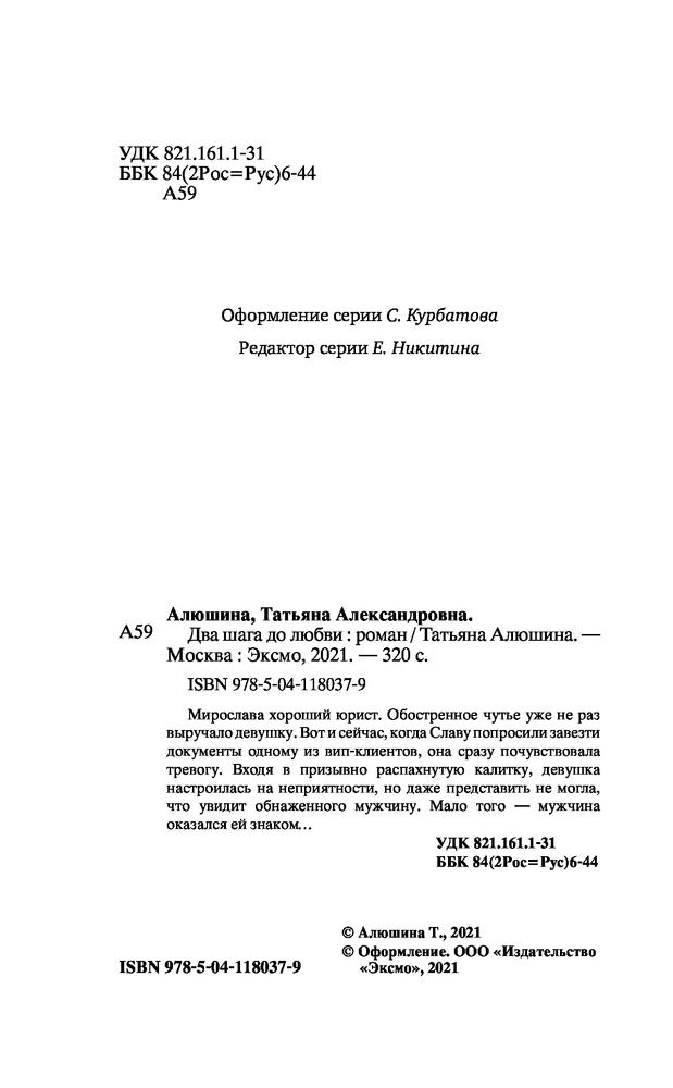 💳 Оплатить за товар можно при получении 🇰🇿 Есть бесплатная доставка по Казахстану 🎁 Копите бонусы с каждой покупки Серия: Любимые романы Татьяны Алюшиной (покет большого формата) Мирослава хороший юрист. Обостренное чутье уже не раз выручало девушку. Вот и сейчас, когда Славу попросили завезти документы одному из вип-клиентов, она сразу почувствовала тревогу. Входя в призывно распахнутую калитку, девушка настроилась на неприятности, но даже представить не могла, что увидит обнаженного мужчину. Мало того — мужчина оказался ей знаком... |