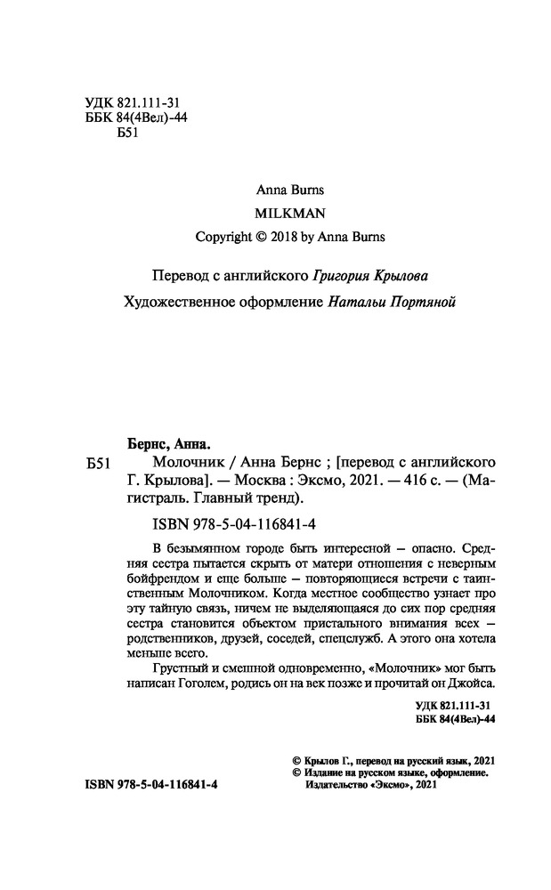 МолочникВ данный момент этот товар отсутствует в продаже. Возможно, у нас найдется аналогичный или похожий товар здесь. Серия: Магистраль. Главный тренд В безымянном городе быть интересной — опасно. Средняя сестра пытается скрыть от матери отношения с неверным бойфрендом и еще больше — повторяющиеся встречи с таинственным Молочником. Когда местное сообщество узнает про эту тайную связь, ничем не выделяющаяся до сих пор средняя сестра становится объектом пристального внимания всех — родственников, друзей, соседей, спецслужб. А этого она хотела меньше всего. |