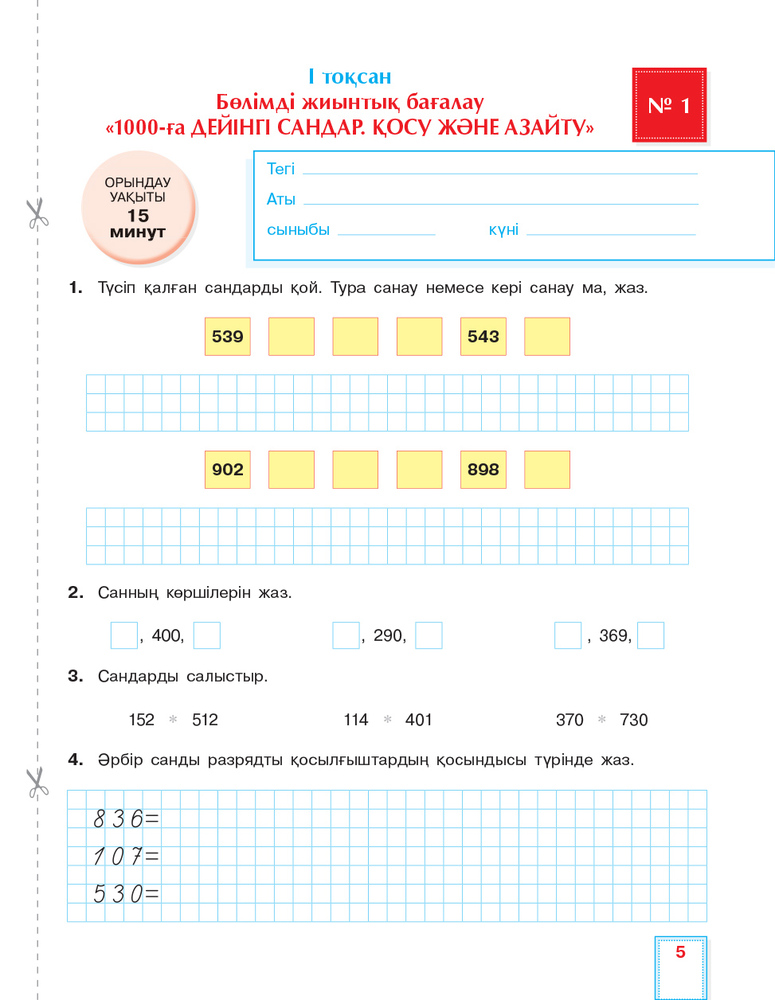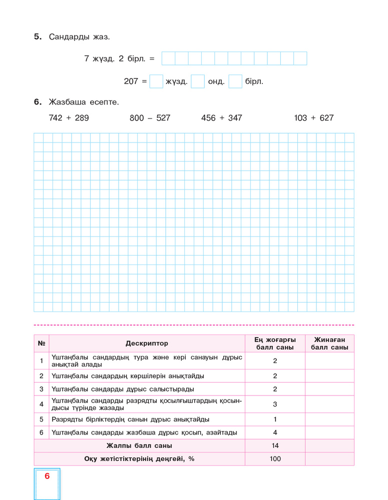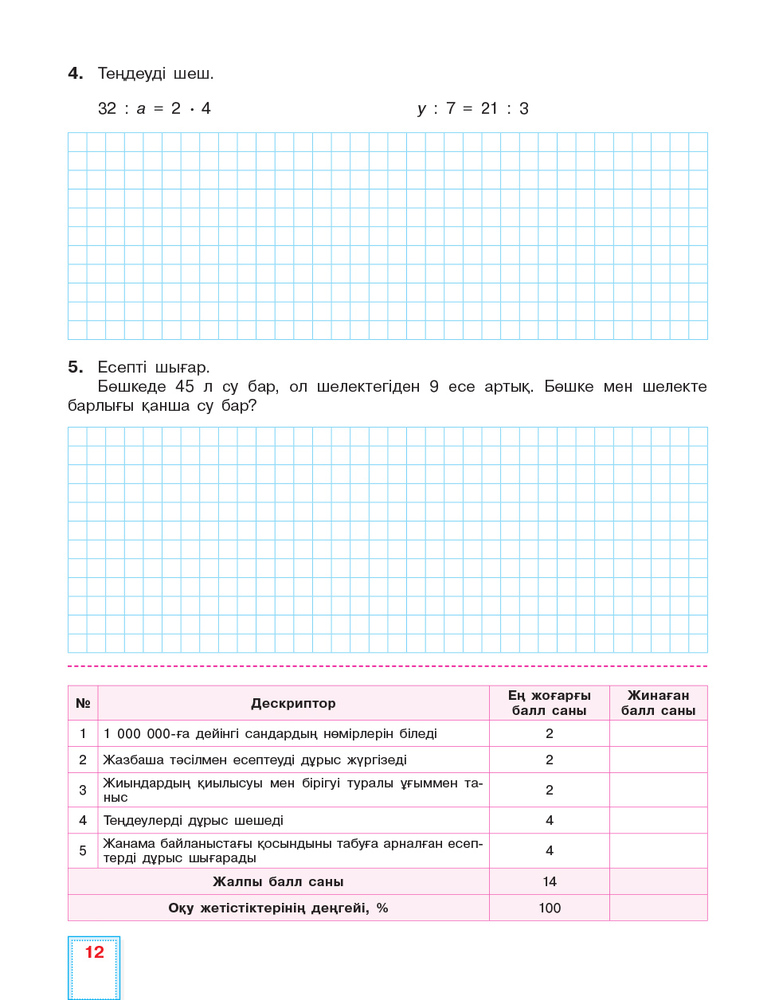 Математика. Критериалды бағалау. Бөлімді жиынтық бағалау, тоқсандық жиынтық бағалау. 3 сынып