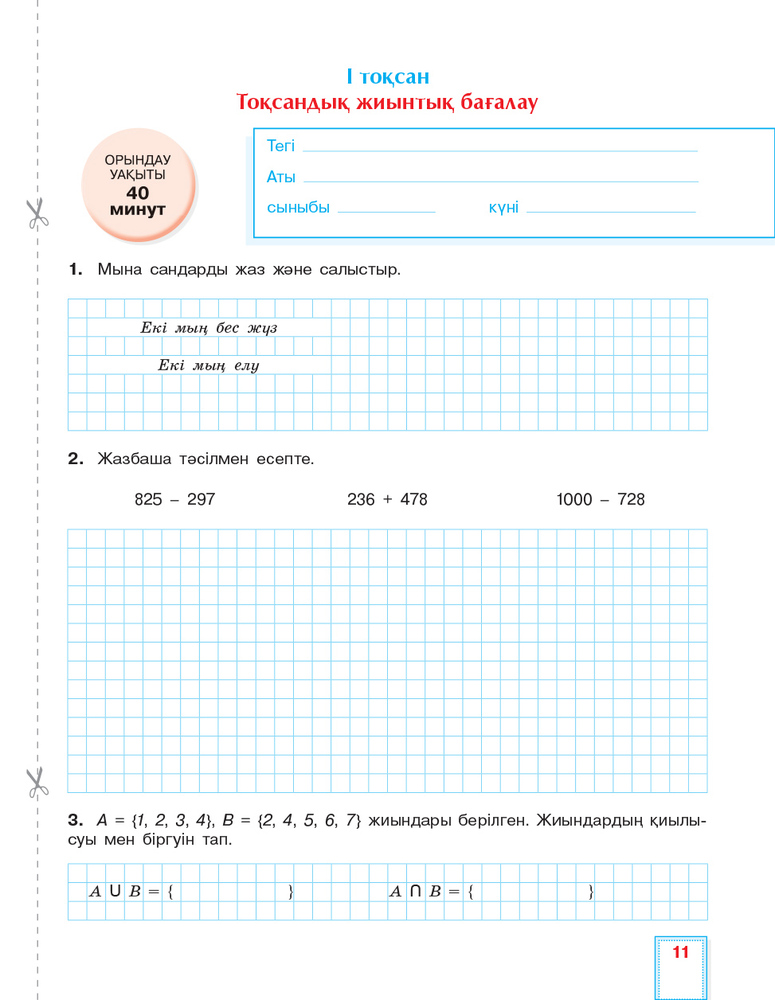 "Ұсынылып отырған құралда бастауыш сыныпта білім алатындарға критериальды (жиынтық) бағалауға арналған материалдар берілген. Жиынтық бағалау тоқсан бойында (олар тарау / бөлім бойынша немес өтілген тақырыптарға арналады (БЖБ), тоқсан соңында (тоқсандық жиынтық бағалау ТЖБ) жүргізіледі. |