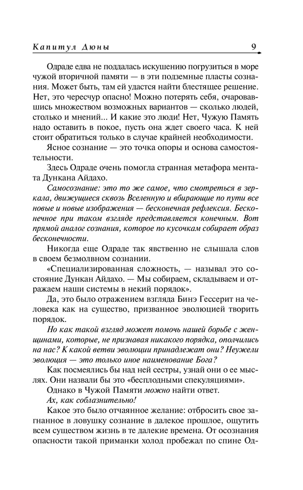 Капитул ДюныВ данный момент этот товар отсутствует в продаже. Возможно, у нас найдется аналогичный или похожий товар здесь. Серия: Дюна Досточтимые Матроны уничтожили планету Ракис и почти полностью завоевали Старую Империю. Сестры Ордена Бинэ Гессерит создают новую Дюну на планете Капитул и вырабатывают стратегию, которая позволит им вернуть утраченные позиции. Однако противник не намерен сдаваться: он продолжает наступление и строит свои хитроумные планы... |