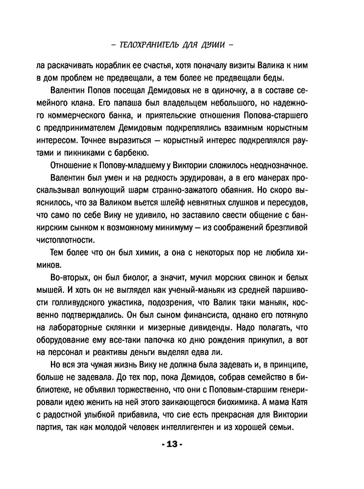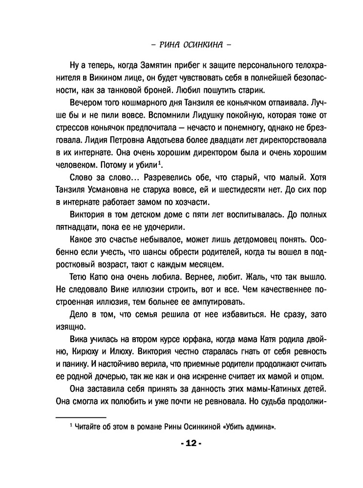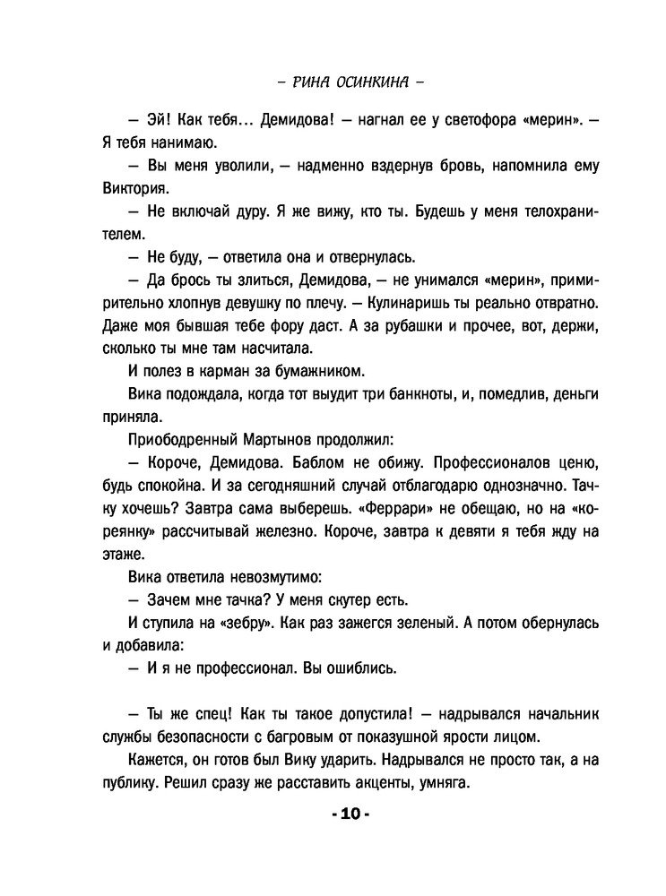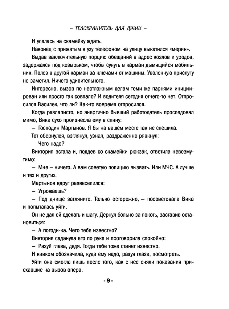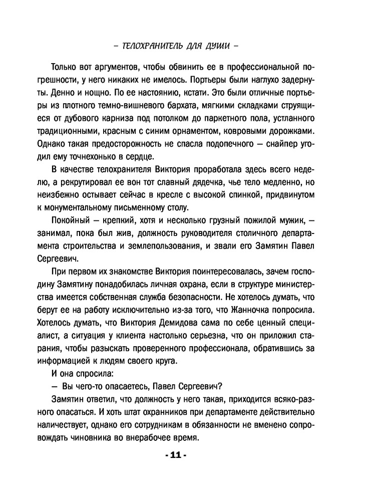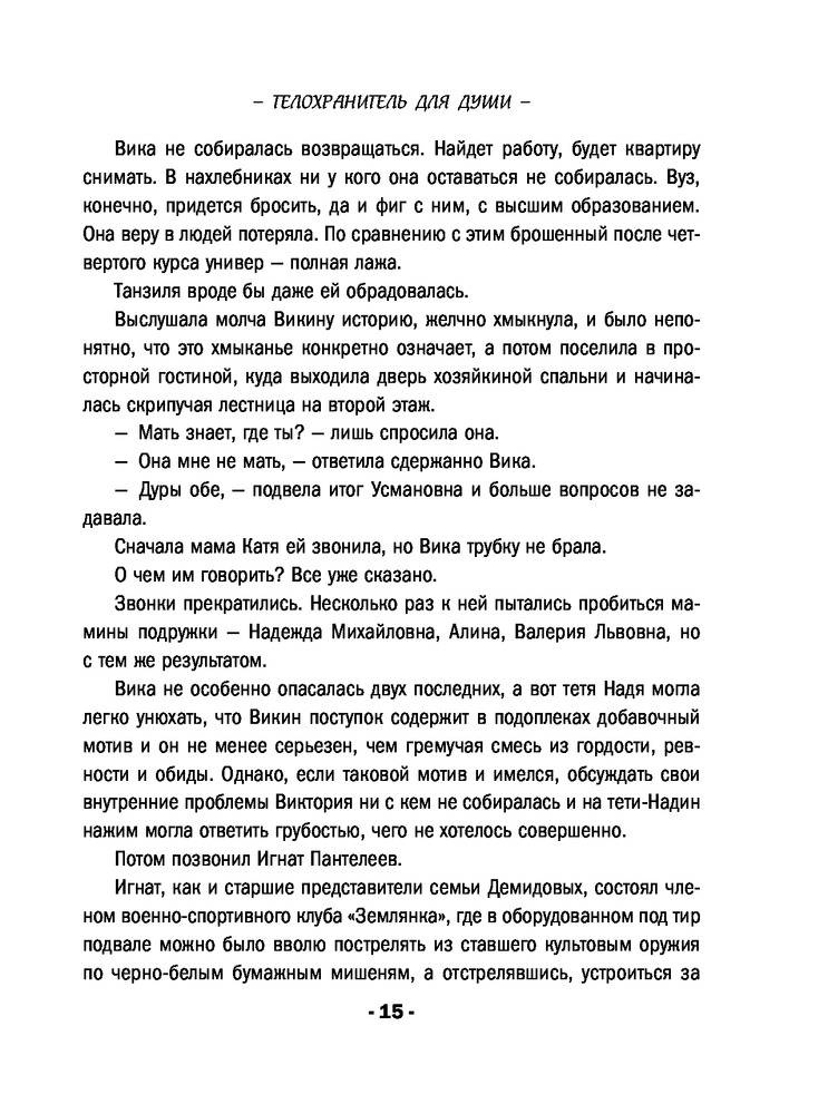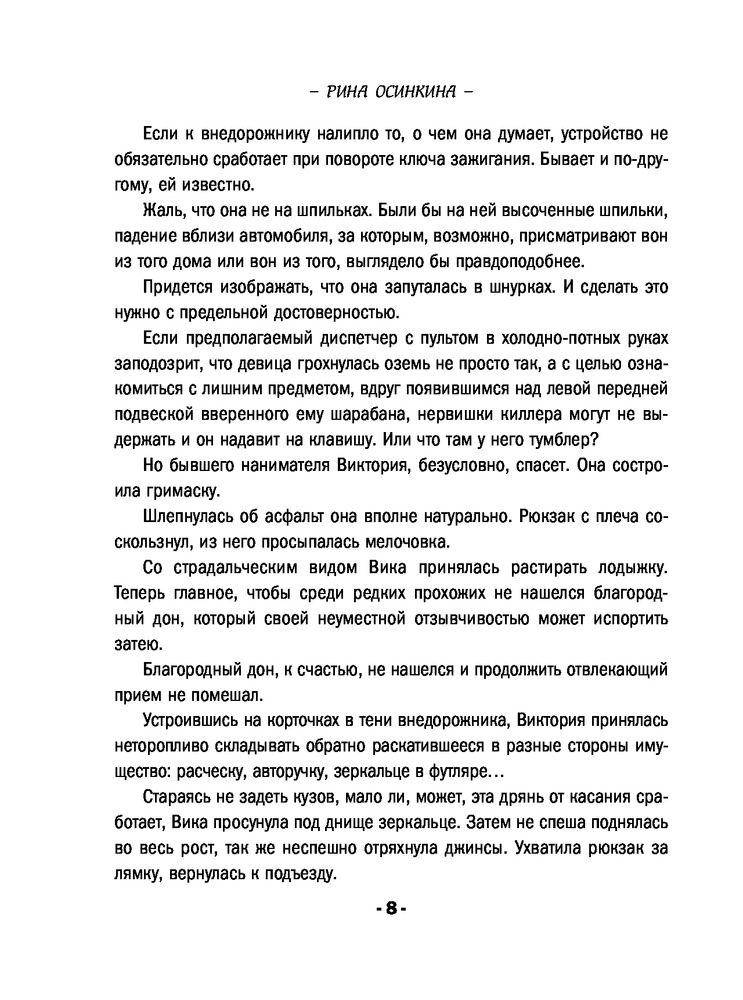 💳 Оплатить за товар можно при получении 🇰🇿 Есть бесплатная доставка по Казахстану 🎁 Копите бонусы с каждой покупки Серия: Ловушки мегаполиса. Городской детектив (обложка) Виктории не везет с самого начала — ее попытка построить карьеру личного телохранителя заканчивается провалом. Видный чиновник Замятин, ее первый клиент, убит выстрелом в грудь, причем в закрытом и наглухо зашторенном кабинете. Следующий ее клиент, муж бывшей одноклассницы Герман Галактионов, только чудом остается жив. Причем действует, судя по почерку, тот же самый киллер, который уже «срисовал» симпатичную телохранительницу Вику и шантажирует ее жизнью и смертью близких людей... |