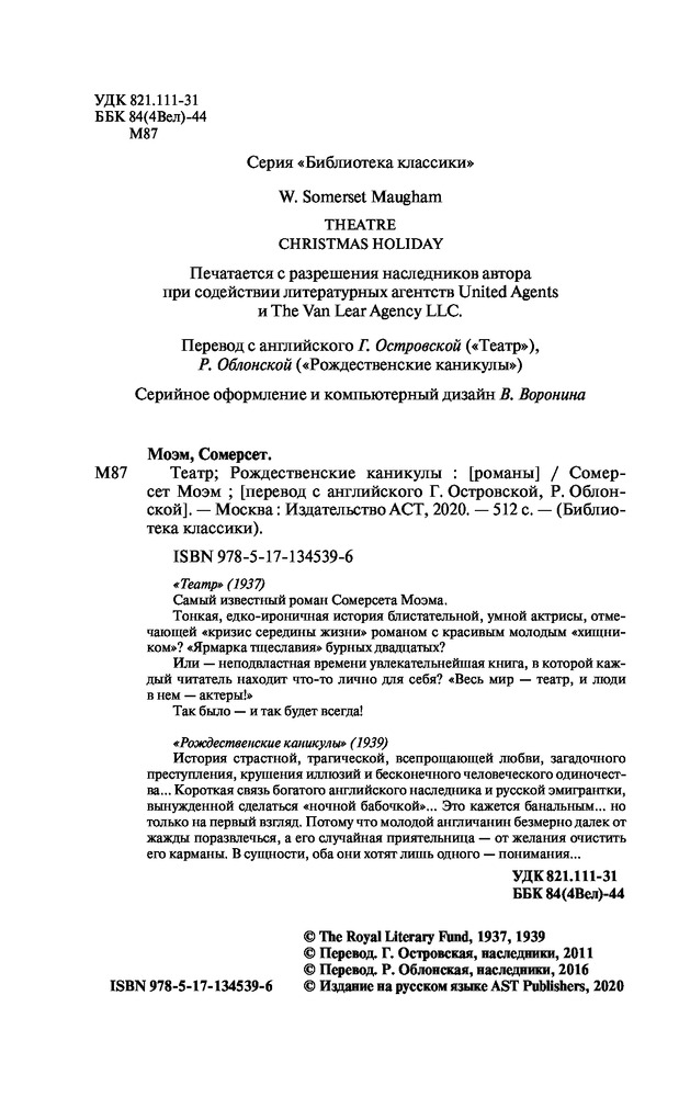 Моэм прекрасен, хоть главные персонажи меня чаще раздражают! Из 4 мною прочитанных романов больше нравится "Рождественские каникулы"
