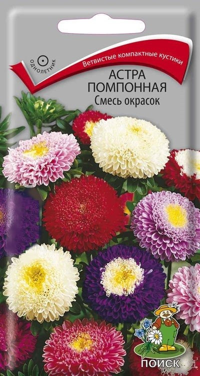Чудо астры! Растение высотой 40-55 см, компактное, ветвистое. Цветоносы прочные. Соцветия плоскоокруглые, диаметром 4-5 см, разнообразной окраски. Язычковые цветки широкие короткие, расположены в 2-4 ряда по краю. Центр заполнен длинными трубчатыми цветками, собранными очень плотно и окрашенными также как язычковые. На растении до 30 соцветий. Цветет июль — август. Используют очень широко: для посадки в сборные цветники группами, на рабатки — рядами и на срезку.