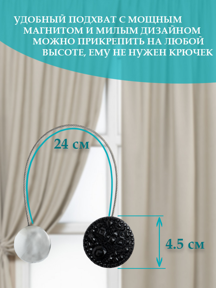 Ajur Подхват магнитный для шторВ данный момент этот товар отсутствует в продаже. Возможно, у нас найдется аналогичный или похожий товар здесь. Украшения для штор в виде декоративных магнитов используются для крепления шторы и декора окна. Длина троса 20 см. |