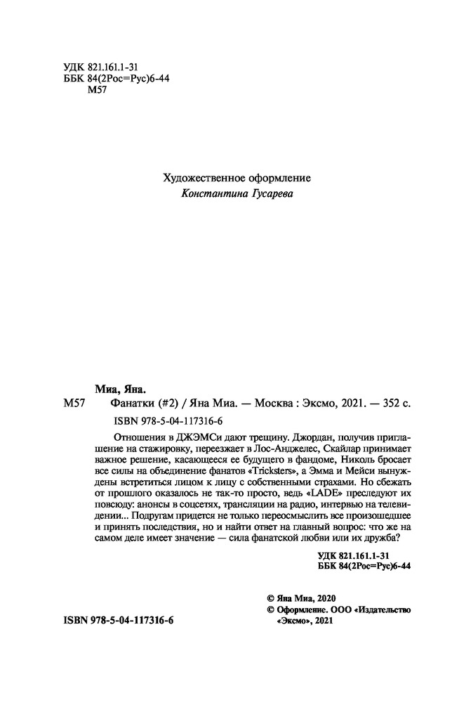 Серия: Young Adult. Инстахит. Миры Яны Миа Отношения в ДЖЭМСи дают трещину. Джордан, получив приглашение на стажировку, переезжает в Лос-Анджелес, Скайлар принимает важное решение, касающееся ее будущего в фандоме, Николь бросает все силы на объединение фанатов «Tricksters», а Эмма и Мейси вынуждены встретиться лицом к лицу с собственными страхами. Но сбежать от прошлого оказалось не так-то просто, ведь «LADE» преследуют их повсюду: анонсы в соцсетях, трансляции на радио, интервью на телевидении... Подругам придется не только переосмыслить все произошедшее и принять последствия, но и найти ответ на главный вопрос: что же на самом деле имеет значение — сила фанатской любви или их дружба? |