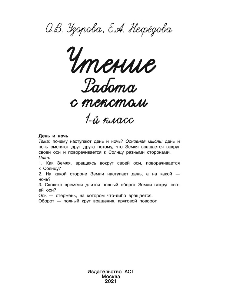 Чтение. Работа с текстом. 1 классВ данный момент этот товар отсутствует в продаже. Возможно, у нас найдется аналогичный или похожий товар здесь. Серия: Быстрое обучение: методика О.В. Узоровой Ольга Васильевна Узорова — педагог-практик, автор более 6 000 учебных, методических и развивающих пособий для дошкольников и учеников младших классов. По результатам 2020 года О. В. Узорова признана одним из наиболее востребованных в России авторов учебных пособий. |