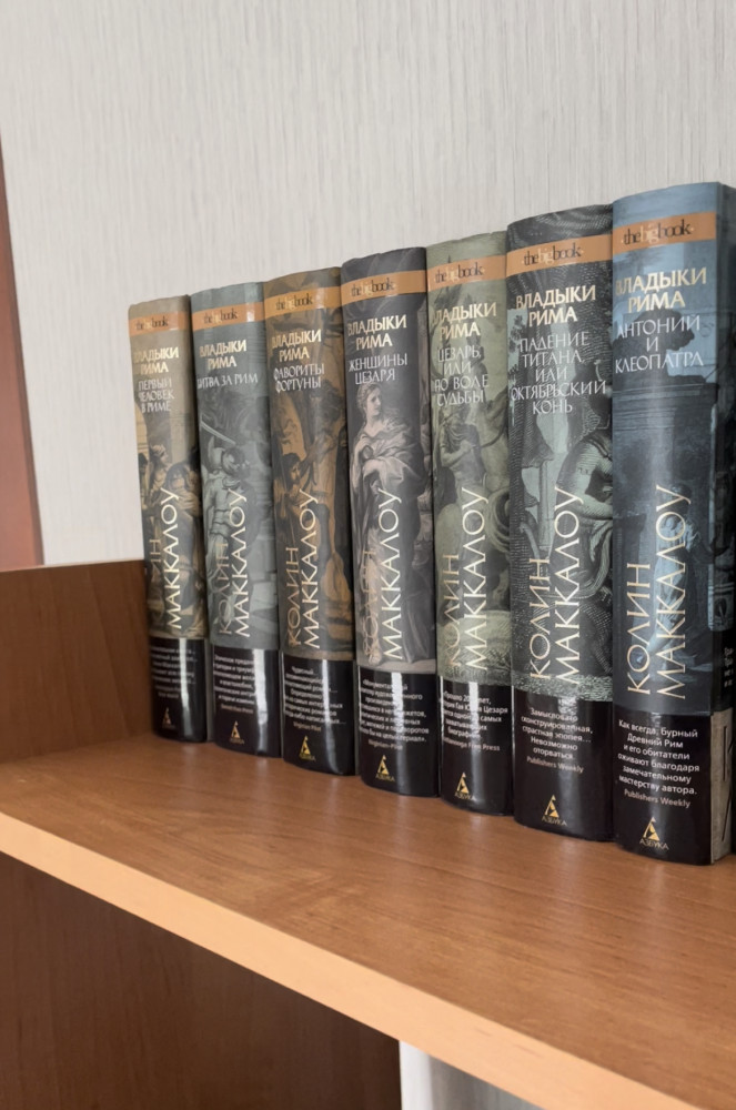 Любимая серия! Однако, собирала я ее с миру по нитке. Первую купила на флипе, вторую и третью нашла в книжном городе в два раза дешевле, четвёртую ждала из Челябинска (потому что большинство томов на флипе в наличии нет), пятую урвала последнюю в меломане, шестую и седьмую взяла там же - потому что цены плюс-минус одинаковые! Но я довольна, сердечко мое успокоилось - стоят теперь глаз радуют) сейчас читаю четвёртую и ещё больше восхищаюсь Цезарем и деятелями того времени