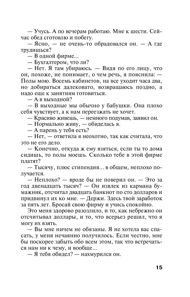 В данный момент этот товар отсутствует в продаже. Возможно, у нас найдется аналогичный или похожий товар здесь. Серия: Авантюрный детектив. Романы Т. Поляковой (обложка) Жила была Красная Шапочка. И спасла она от верной гибели серого волка. А волк возьми да и влюбись в нее. Вот тут-то и началось самое страшное... Полина Лунина порой впрямь ощущает себя героиней сказки. Только сказка какая-то жуткая получается: все охотятся друг на друга, а ее используют то ли как приманку, то ли как слепое орудие. И при этом все желают ей добра и счастья — и бандиты, и милиция, и друзья. Правда, Полине от этого не легче: сказка чем дальше, тем страшнее. Придется самой сочинять хороший конец. А конец — делу венец. Возможно, венцом и кончится... |