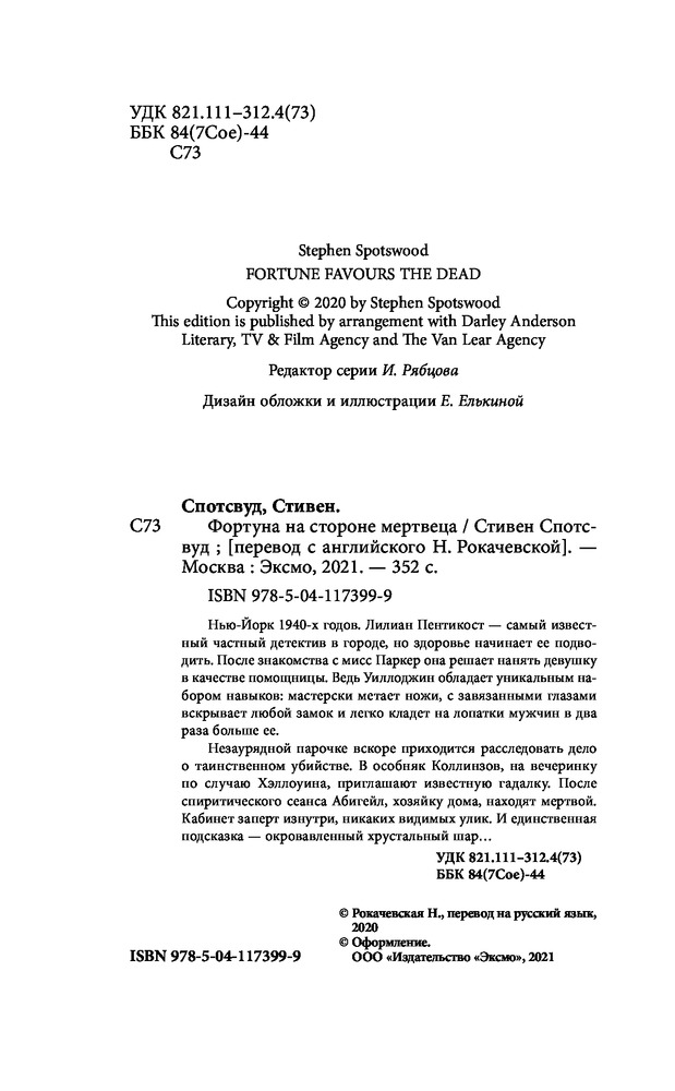 В данный момент этот товар отсутствует в продаже. Возможно, у нас найдется аналогичный или похожий товар здесь. Серия: Tok. Логика и игра Нью-Йорк 40-х годов. Лилиан Пентикост самый известный частный детектив в городе, но здоровье начинает ее подводить. После знакомства с мисс Паркер, она решает нанять девушку в качестве помощницы. Ведь Уиллоджин обладает уникальным набором навыков: мастерски метает ножи, с завязанными глазами вскрывает любой замок и легко кладет на лопатки мужчин в два раза больше нее.