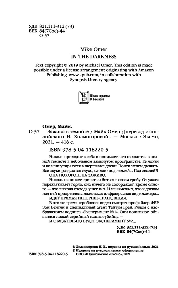 Заживо в темноте-20% +117 легко читается интересный сюжет мастерство автора оформление