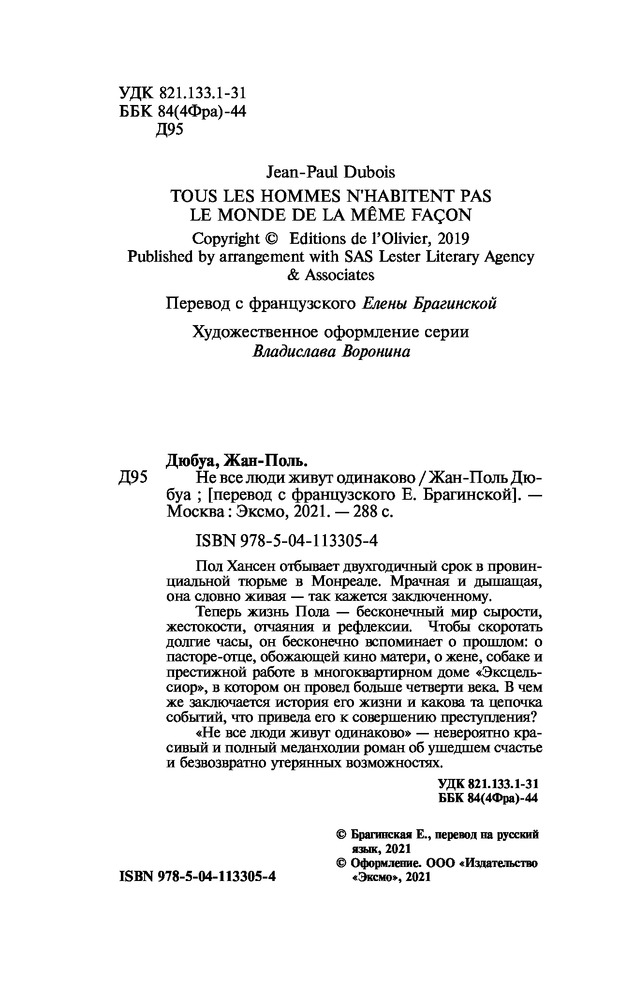 Серия: Интеллектуальный бестселлер. Читает весь мир. Новое оформление Пол Хансен отбывает двухгодичный срок в провинциальной тюрьме в Монреале. Мрачная и дышащая, она словно живая — так кажется заключенному. |