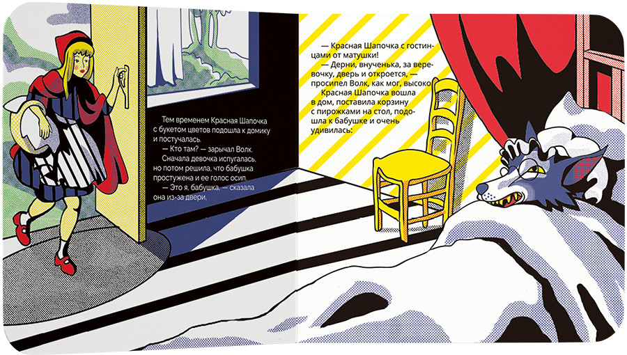 Художники изображали на своих картинах популярных певцов, упаковки от печенья, банки газированных напитков и рекламные знаки товаров. Знаменитые на весь мир работы Энди Уорхола и Роя Лихтенштейна послужили вдохновением для иллюстратора, создавшего свои рисунки к сказке «Красная шапочка».