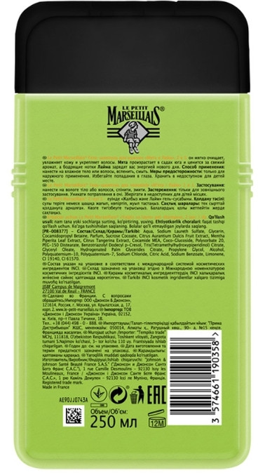 Le Petit Marseillais Гель-шампунь для мужчин «Мята и лайм» 2 в 1