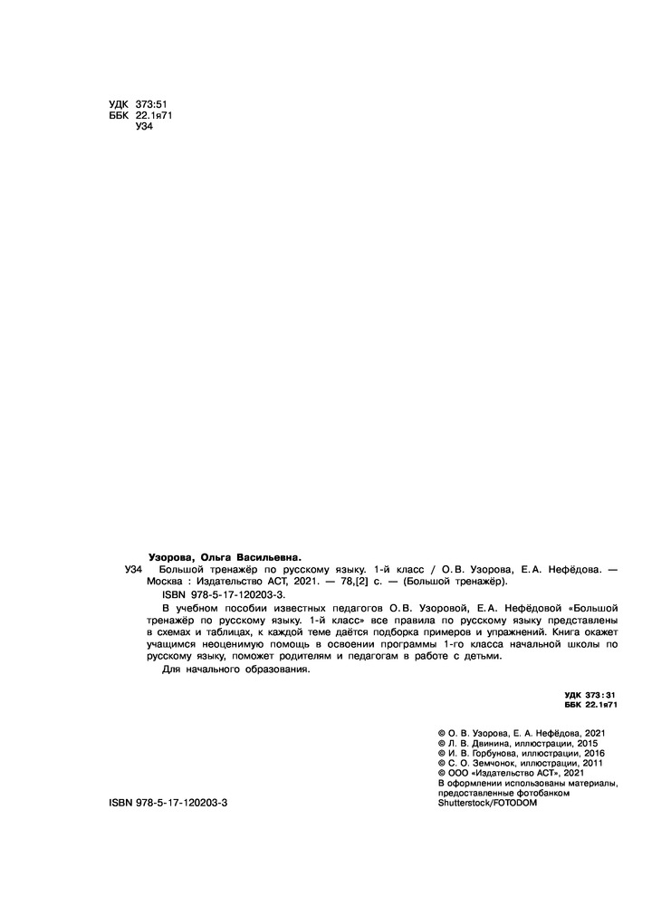 Большой тренажер по русскому языку 1 классОльга Васильевна Узорова, Елена Алексеевна Нефедова