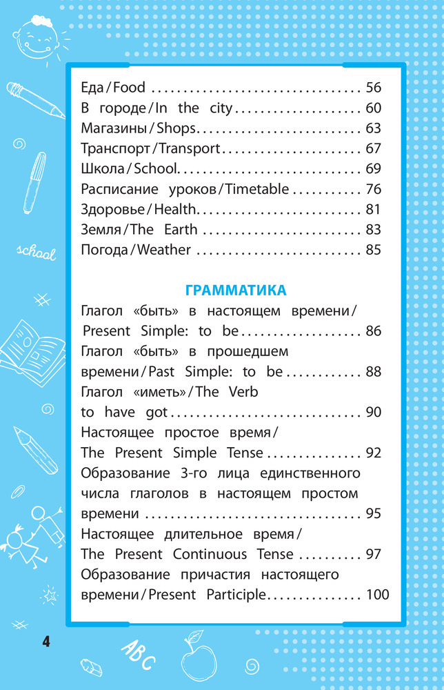 💳 Оплатить за товар можно при получении 🇰🇿 Есть бесплатная доставка по Казахстану 🎁 Копите бонусы с каждой покупки Серия: Наглядно и доступно. Начальная школа Современный и удобный в использовании справочник подготовлен в соответствии с требованиями ФГОС для начальной школы. В книге в наглядном виде представлены правила по фонетике и грамматике английского языка, лексика, приведены 28 разговорных тем с переводом. Все правила и определения даны кратко и понятно в виде логических блоков, схем и таблиц. |