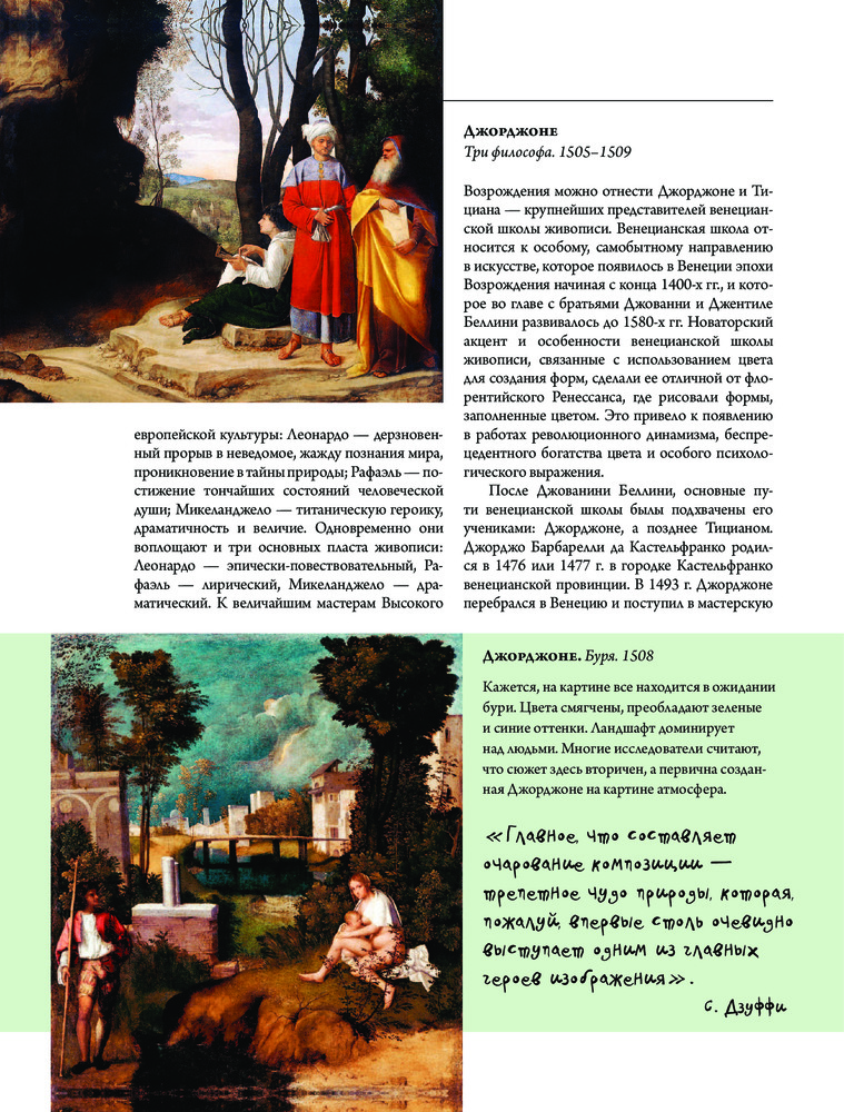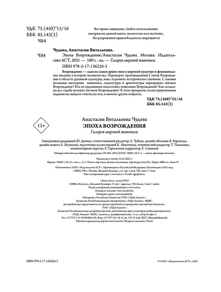 Эпоха ВозрожденияВ данный момент этот товар отсутствует в продаже. Возможно, у нас найдется аналогичный или похожий товар здесь. Серия: Галерея мировой живописи Возрождение — одна из самых ярких и изменивших мировоззрение людей эпох в мировой культуре и феноменальное явление в истории человечества. Это было время нового осмысления природы и человека и грандиозных перемен в истории европейских народов. Переворот, произведенный в эпоху Возрождения в области духовной культуры, имел огромное историческое значение. Из всех областей культуры искусство занимало в Италии первое место. Оно было естественным творческим выражением людей того времени. Поэтому не случайно именно с этой эпохой ассоциируются имена великих живописцев, скульпторов, архитекторов, первооткрывателей и исследователей. Их великие произведения пережили свое время и, пройдя через века, сохранили силу своего воздействия на зрителя, дали толчок к развитию своеобразных национальных культур, а разработанный ренессансными мастерами реалистический метод определил дальнейшее развитие всей художественной культуры Нового времени.С какими великими мастерами живописи, скульптуры и архитектуры неразрывно связано Возрождение? Кто из художников подготовил появление Возрождения? Как складывалась судьба великих титанов Возрождения? В этом прекрасно иллюстрированном издании вы найдете ответы на эти, и многие другие вопросы. |