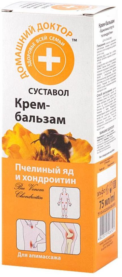 Домашний доктор Крем-бальзам «Пчелиный яд и хондроитин»В данный момент этот товар отсутствует в продаже. Возможно, у нас найдется аналогичный или похожий товар здесь. Действие пчелиного яда снимает суставные боли, уменьшает воспаления, восстанавливает подвижность суставов. Полезность и эффективность крем-бальзама обусловлены свойствами пчелиного яда и хондроитина, входящих в его состав. |