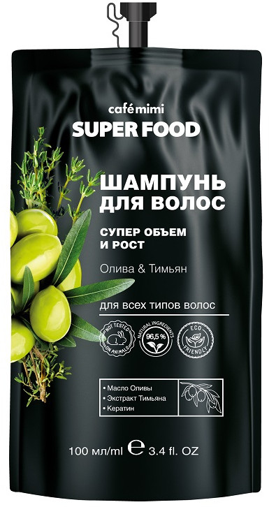Cafe mimi Шампунь для волос с оливой и тимьяном «Объем и рост»