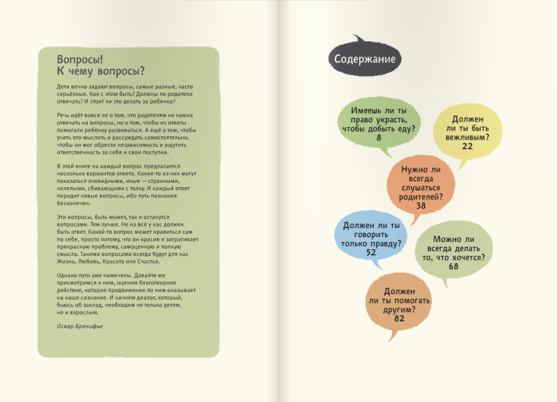 А нам очень понравилась вся серия! Начали читать, когда сыну было шесть, и вот уже третий год периодически читаем, а всё больше обсуждаем, поднимаемые в книжках вопросы: что такое жизнь, счастье, свобода и т.д. Очень интересно наблюдать, как меняются ответы, и какие интересные мысли выдаёт дитёныш. А что до "сомнительности и провокативности суждений", так ведь это не учебник с единственно правильным ответом. На мой взгляд, цель издания - научить ребёнка думать, не боятся задавать "главные" вопросы, свободно рассуждать и, самое главное, высказывать своё мнение, независимо от того, является ли оно "правильным" или нет.