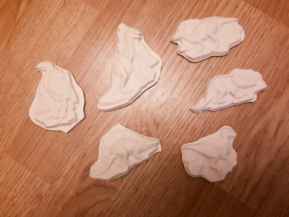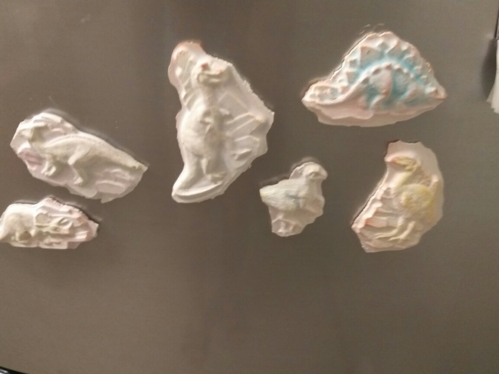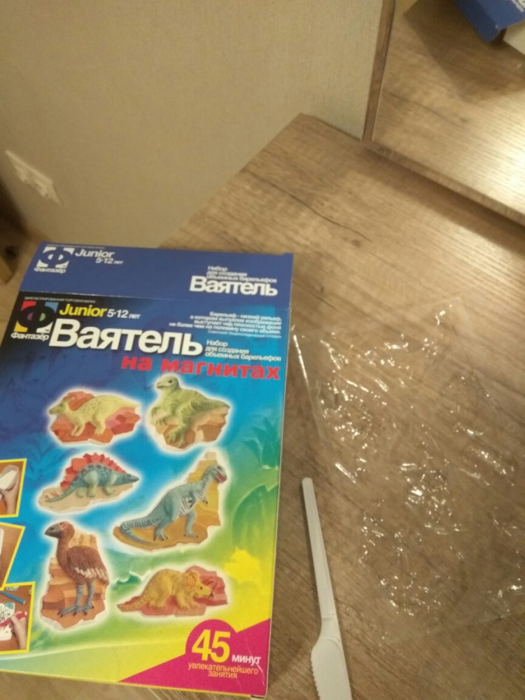 Это наш второй набор. Брала сыну, ему 5 лет! Гипса много, хватило на формочку и еще осталось, залили в формочки для пластилина. Все получилось отлично. Минус один - магнитная лента. Ее мало и держится плохо. Приклеили свои магниты супер клеем.