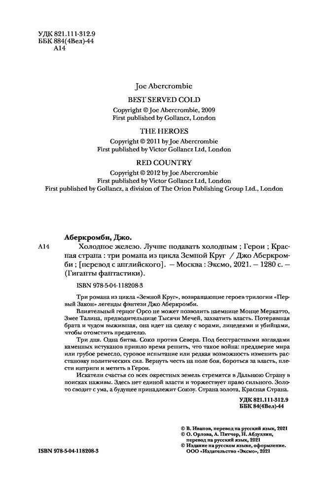 Холодное железо. Три романа из цикла Земной КругВ данный момент этот товар отсутствует в продаже. Возможно, у нас найдется аналогичный или похожий товар здесь. Серия: Гиганты фантастики Три романа из цикла «Земной Круг», возвращающие героев трилогии «Первый Закон» легенды фэнтези Джо Аберкромби. |