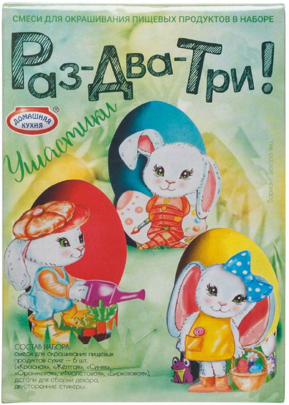 Домашняя кухня Набор для декорирования яиц «Ушастики»В данный момент этот товар отсутствует в продаже. Возможно, у нас найдется аналогичный или похожий товар здесь. Серия: Раз-Два-Три Товар в ассортименте, без возможности выбора. |