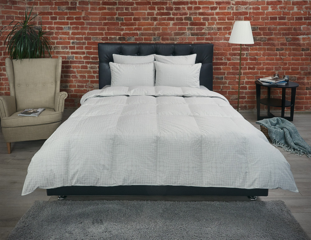Одеяло очень тонкое, на лето пуховое одеяло не нужно, а на зиму не подойдет, пуха совсем мало