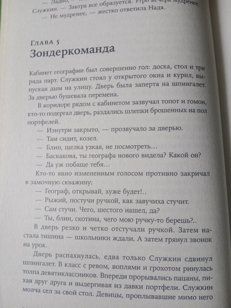 Я немного не поняла зачем вообще это прочла. Давно хотела купить эту книгу, так как прежставляла себе чтото хорошее, светлое. Но увы мои одидания не оправдались. Дальше пойдут спойлеры. Служкин, как человек, всю дорогу меня отталкивал. Он такой безропотный. Вроде и активный, сильный, а всё равно будто воли у него нет. Ему будто бы совершенно безразлична его собственная жизнь. Его существование не имеет никакого смысла. Не было рассказано как он познакомился со своей женой и почему они выбрали друг друга. Их отношения типичны, но ужасны. Она с ним не спит, он ни с кем не спит. К ним домой вечно ходит его лучший друг, который взаимно влюбился в его жену Надю. А Служкин токмо сидит да смотрит как между ними искры скачут. Его неуважаю ученики. НО это не мещает ему пить с ними водку по подъездам и брать в поход, гле они тоже пьют. Мне было неприятно, больно и противно такое читать. Мне хотелось чего-то доброго и светлого, а не... ЛЮБВИ 30-ЛЕТНЕГО МУЖИКА К 14-ЛЕТНЕЙ ДЕВОЧКЕ. Ну фу! Когда в последних главах он укусил её за мочку уха, меня аж тошнить начало. Любви все возрасты покорны, я знаю, но он не так бросается в глаза, когда оба партнёра хотя бы совершеннолетние