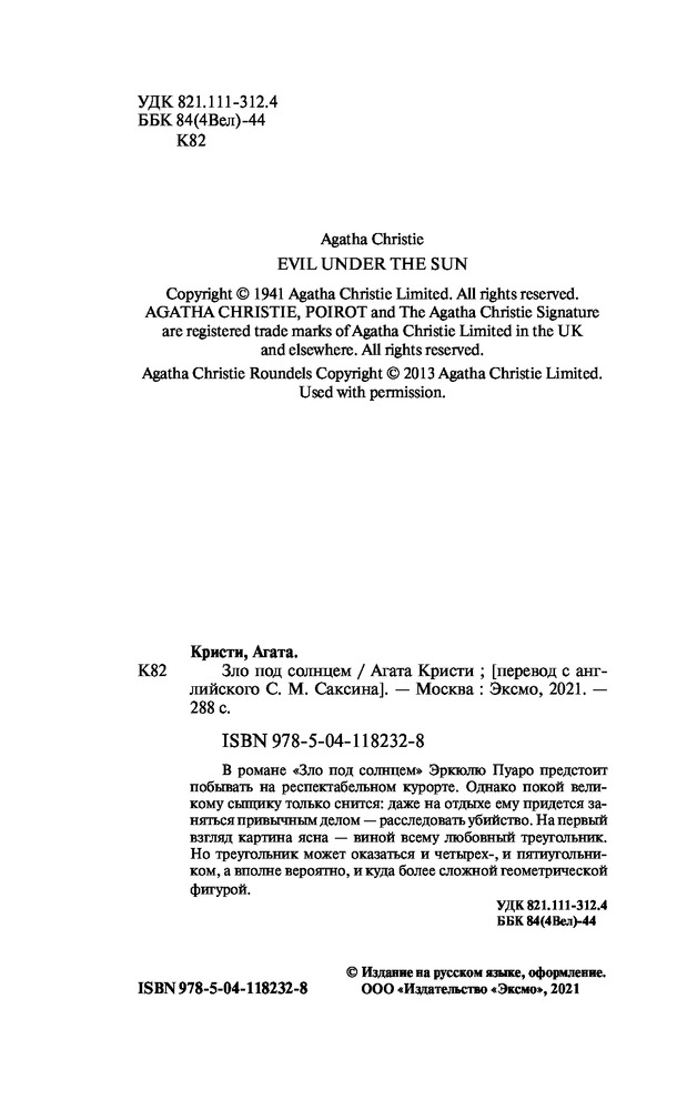 💳 Оплатить за товар можно при получении 🇰🇿 Есть бесплатная доставка по Казахстану 🎁 Копите бонусы с каждой покупки Серия: Агата Кристи. Первая леди детектива В романе «Зло под солнцем» Эркюлю Пуаро предстоит побывать на респектабельном курорте. Однако покой великому сыщику только снится: даже на отдыхе ему придется заняться привычным делом — расследовать убийство. На первый взгляд картина ясна — виной всему любовный треугольник. Но треугольник может оказаться и четырех- и пятиугольником, а вполне вероятно, и куда более сложной геометрической фигурой. |